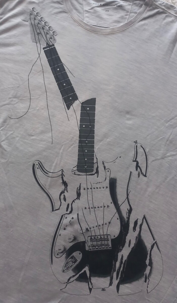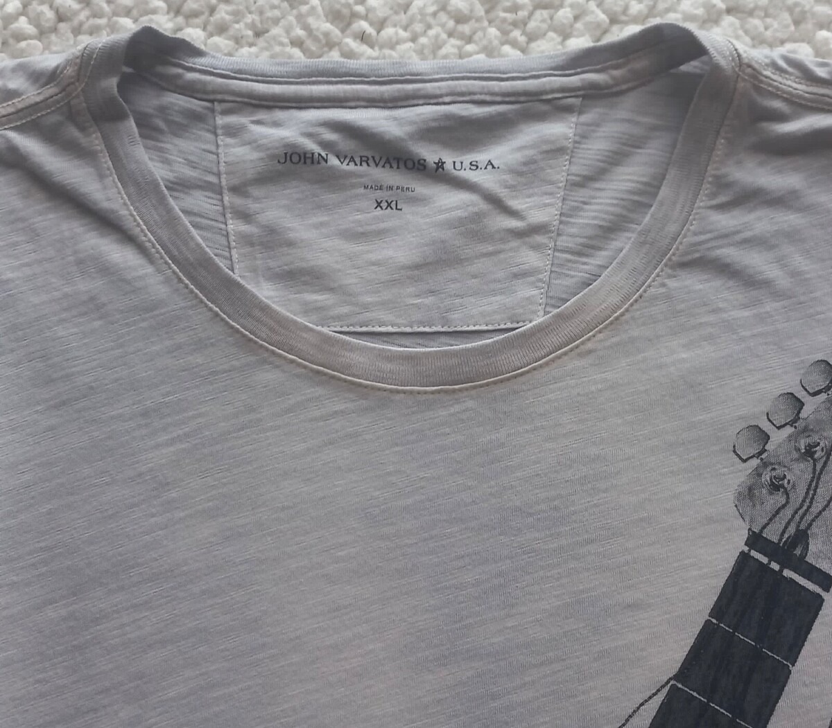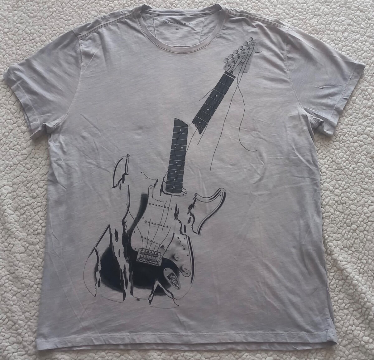 John Varvatos Star USA Men's Stone Wash Gray Broken Guitar Graphic T-Shirt XXL