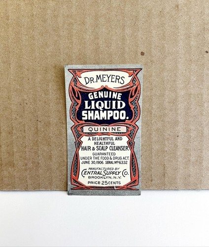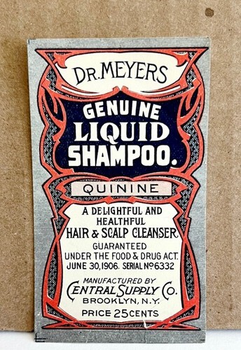 Central Supply Co Antique Label 1910s Dr Meyer's Liquid Shampoo Quinine 1.5 x 3