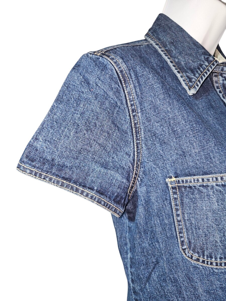 VTG 2001 Y2K Gap Denim Cotton Mini Shirt Dress Womens Size 8 Snap-Front Cowgirl