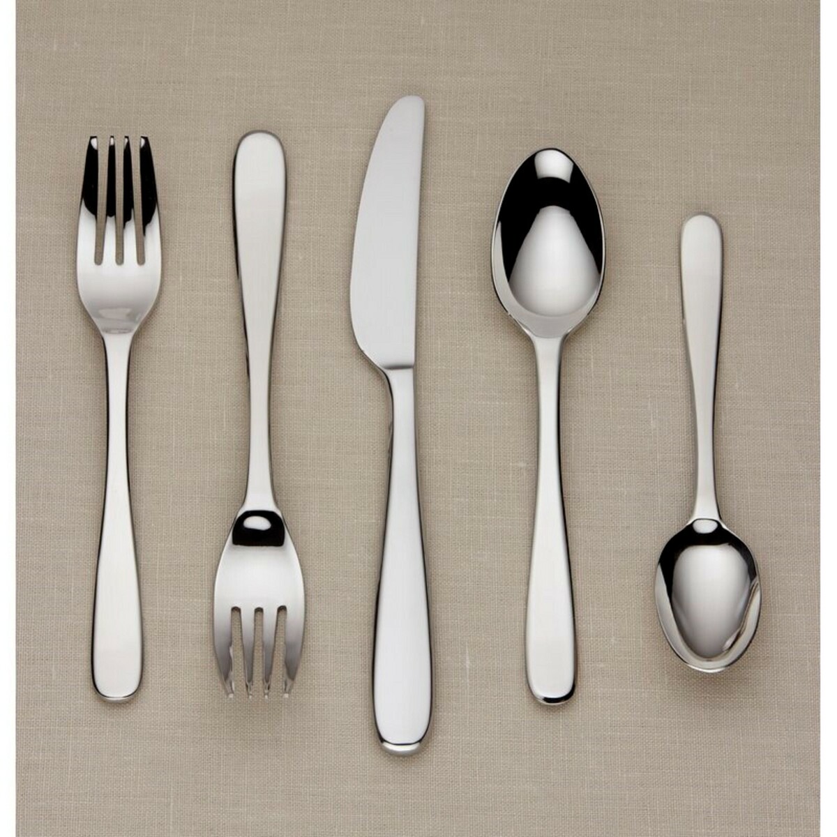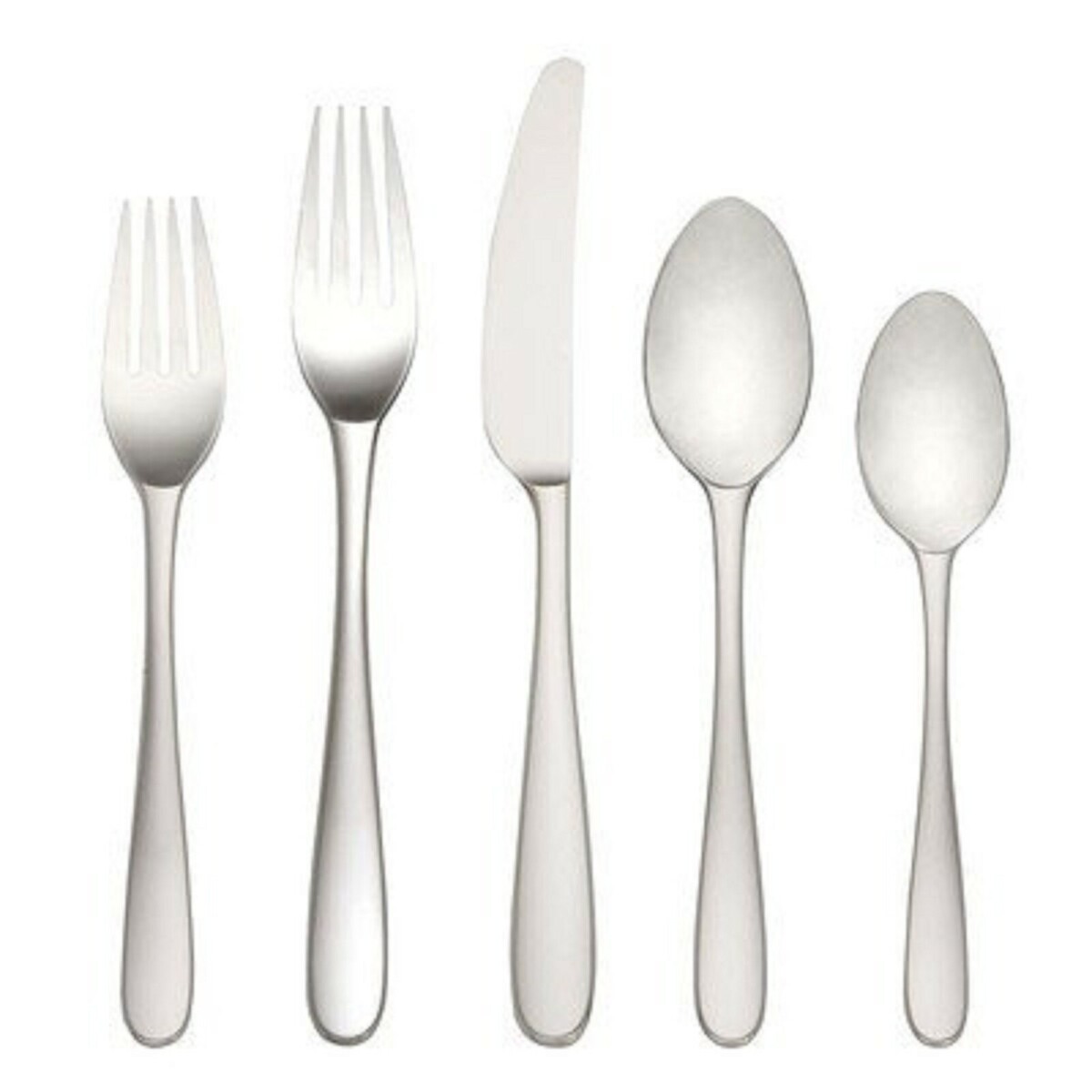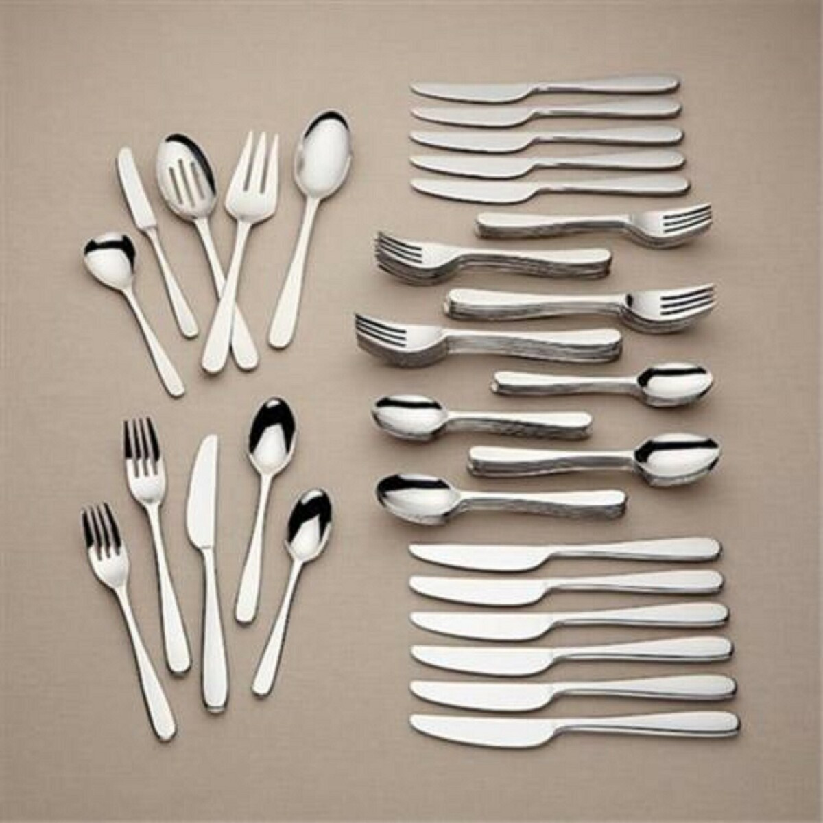 With a simple, sleek design the Stratton 65-piece Flatware Set by Lenox ushers the polished 18/10 stainless steel to center stage. This elaborate and sleek silverware set includes twelve dinner forks, salad forks, dinner knives, tablespoons, and teaspoons, in addition to a serving spoon, pierced serving spoon, sugar spoon, butter knife, and serving fork.