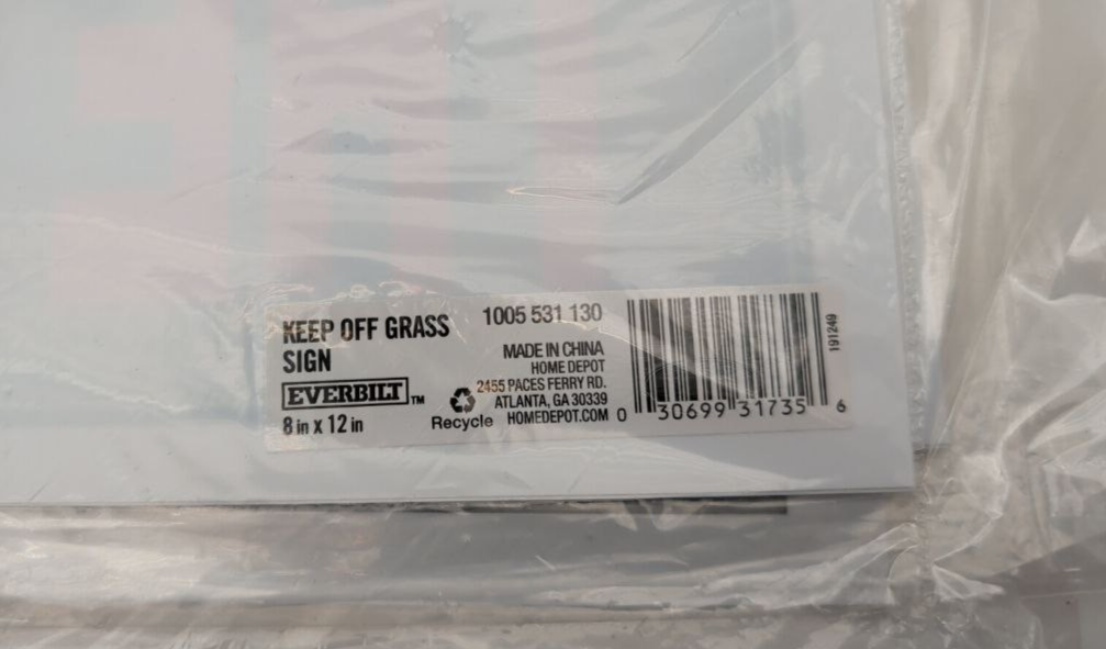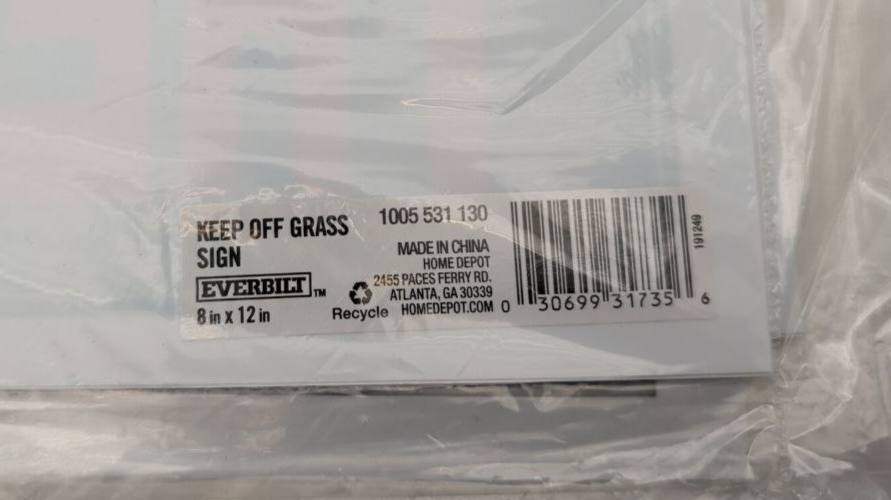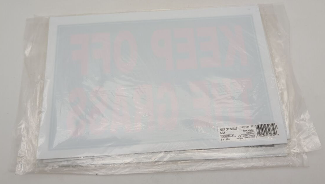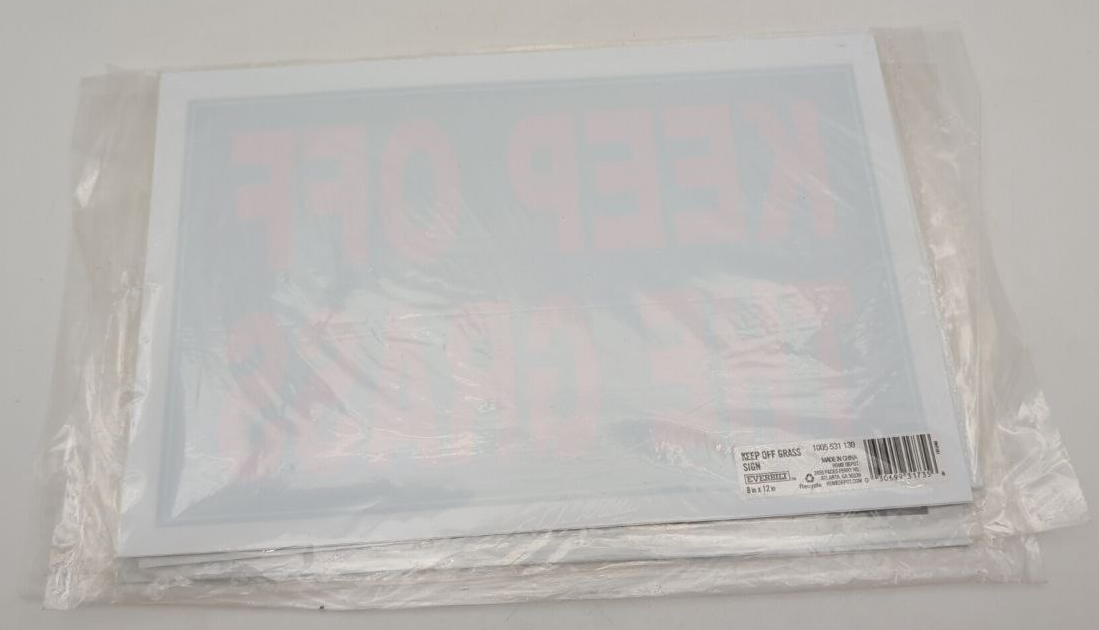 Item includes: Please note: This pack includes 3x Everbilt 8 in x 12 in Plastic Keep Off Grass Sign Only ? As Pictured. No stakes, poles or other accessories are included.