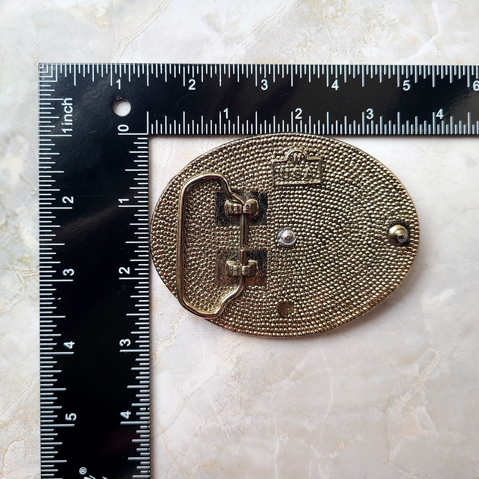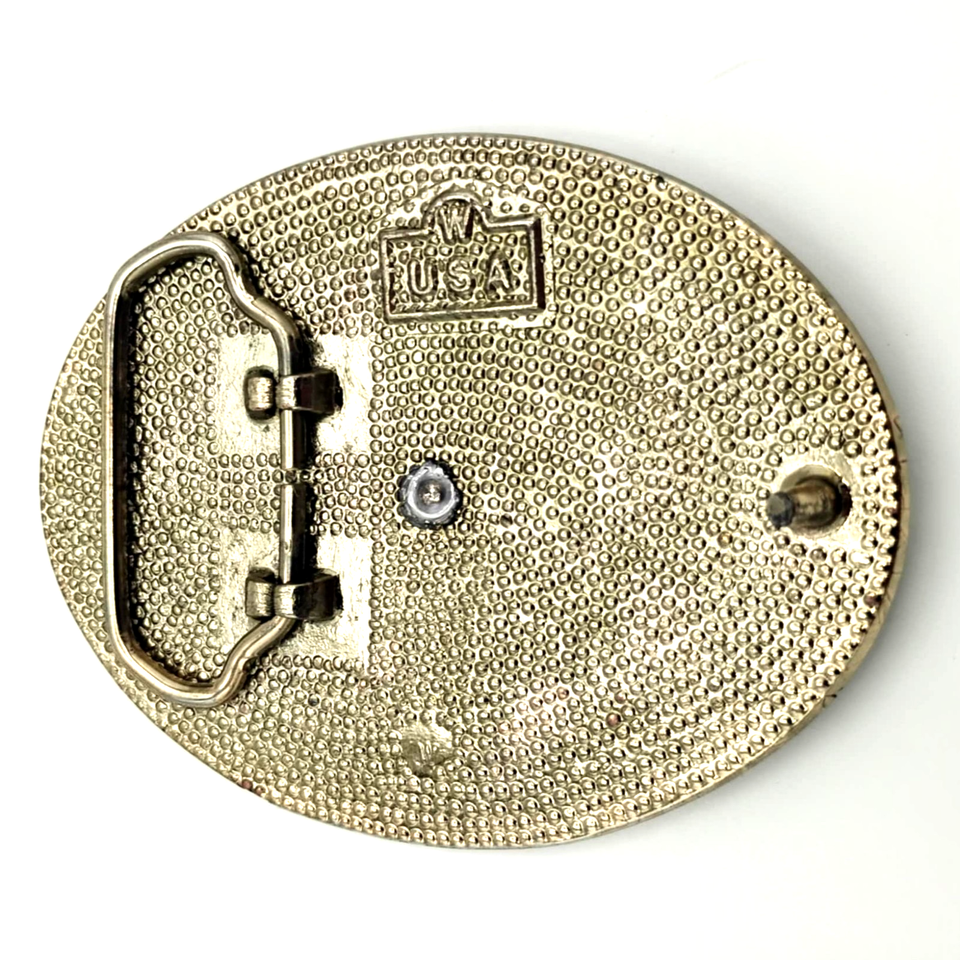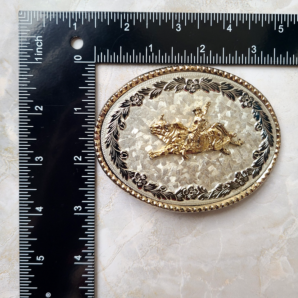 Vintage Bull Riding Cowboy Belt Buckle Etched Silver Gold Tone Western Rodeo USA