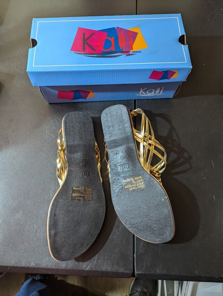 Step into summer with these stylish Kali twist sandals in size 11. The gold synthetic upper material adds a touch of glam to any outfit, while the standard shoe width and flat style ensure comfort for all-day wear. These sandals are perfect for any occasion, whether you're running errands or heading to the beach.