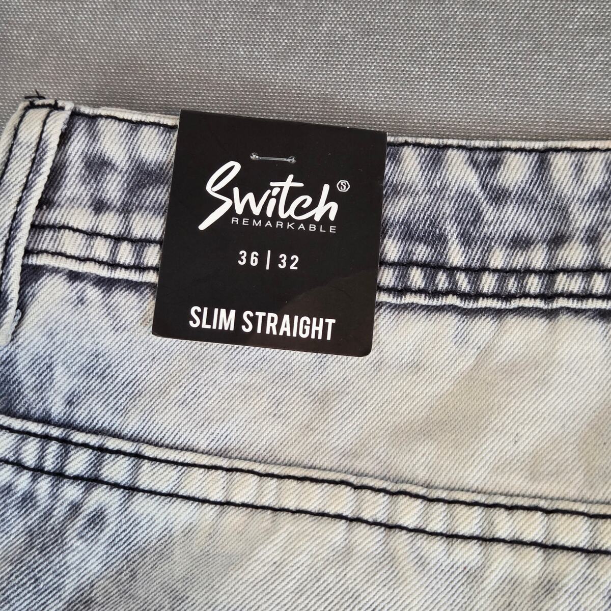 New with tags Switch Remarkable men?s slim straight jeans in a gray acid-wash finish with light distressing. Made from 100% cotton denim with classic five-pocket styling and branded details. Modern, fitted silhouette with an easy straight leg.