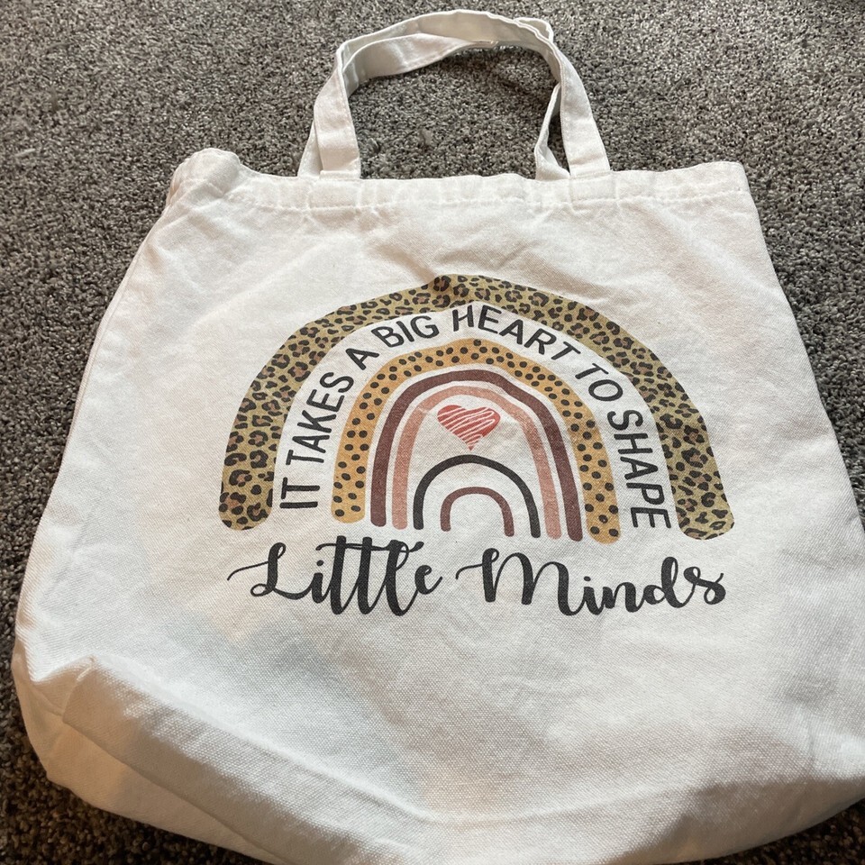 Canvas Tote Shopper Bag “Big Heart To Shape Little Minds” 14”x14x3