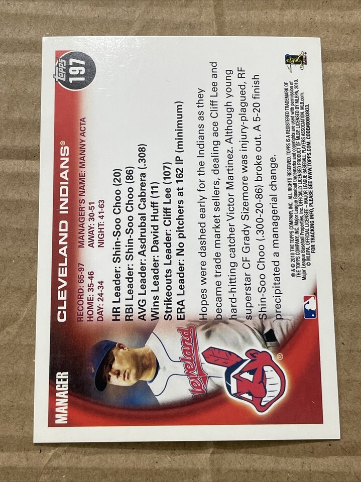 2010 Topps Cleveland Indians Card Indians and 50 similar items