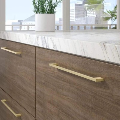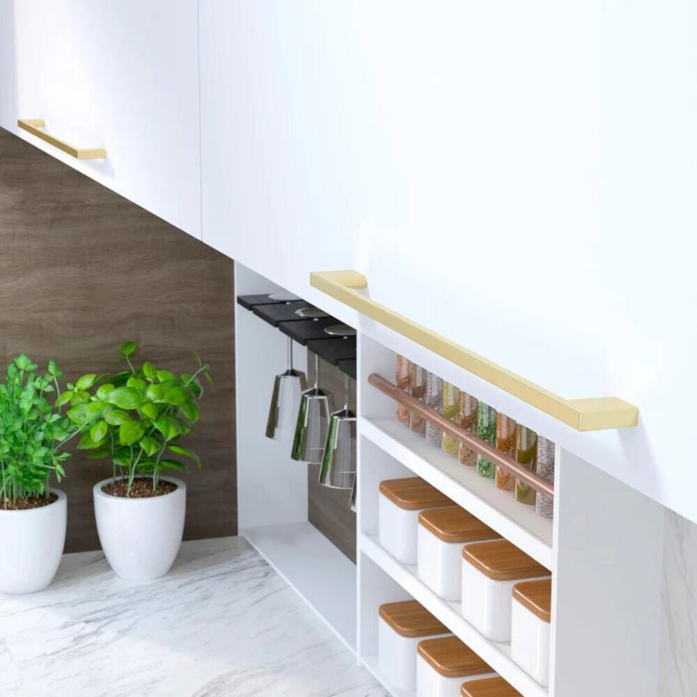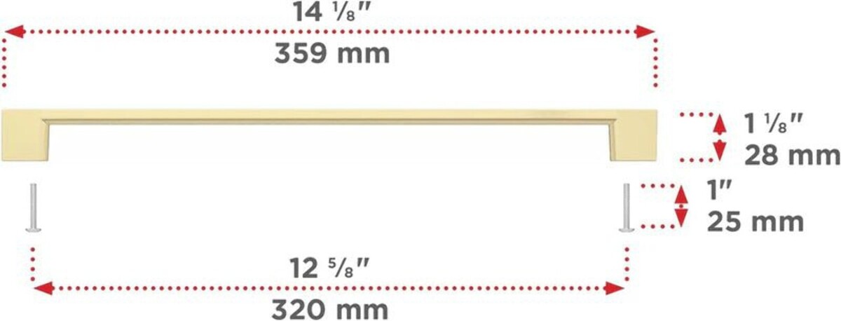 The Richelieu Hardware BP8160320160 Armadale Collection Cabinet Pull adds a touch of sophistication to your kitchen or bathroom with its elegant Satin Brass finish. As part of our exclusive Gold lineup of hardware, this contemporary-style pull elevates the aesthetic of cabinet doors and drawer fronts. With its chic Satin Brass finish, these pulls bring a modern touch of gold to any space. Featuring understated elegance with straight lines and a slim profile, they effortlessly complement various styles of cabinets and drawers. Product Technical Specifications: Center to Center measurement (distance between the drill holes): 12 5/8 inches (320 mm) Length (from left to right): 14 1/8 inches (359 mm) Width (top-to-bottom): 3/8 inch (9 mm) Projection (front to back): 1 1/8 inches (28 mm) Finish: Satin Brass, crafted from Zamak Sold per unit, includes mounting hardware for easy installation (8/32 screws) Key Features: High-Quality Material: Crafted from durable and long-lasting materials, ensuring extended use. Easy Installation: Designed for straightforward installation on kitchen cabinets, bathroom vanities, and furniture. Aesthetic Appeal: Adds a touch of sophistication and elegance to any decor. Versatile Application: Ideal for both contemporary and traditional interior settings. Durable Finish: Resistant to tarnishing and corrosion, ensuring a long-lasting shine. Enhanced Grip: Provides a comfortable and firm grip for easy opening and closing of drawers and cabinets. Complete Collection: Part of the Montreuil Collection by Richelieu, offering coordinated hardware solutions. Multi-Functional: Suitable for use in kitchens, bathrooms, living rooms, and bedrooms. Elevate the aesthetic of your kitchen, bathroom, or furniture with the Richelieu Hardware Armadale Collection Cabinet and Drawer Knob. Meticulously crafted with precision and attention to detail, this knob serves as a functional accessory while adding an element of elegance and sophistication to your living spaces. The Montreuil Collection knob boasts versatility, durability, and effortless installation, making it an ideal choice for both contemporary and traditional settings. Transform the appearance of your cabinets, drawers, and furniture pieces with this exquisite hardware selection from Richelieu.