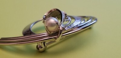 Vintage Sterling Silver Modernist Brooch with Faux Pearl – Mid Century Jewelry