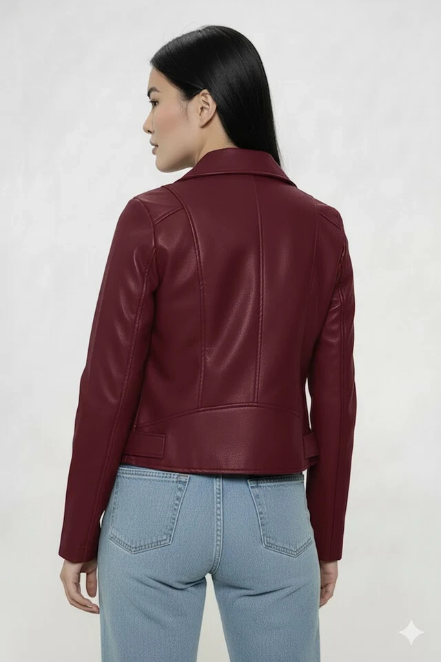 Chaqueta Borgoña Genuina Mujer Piel de Cordero Hecha a Mano Elegante Uso Casu...