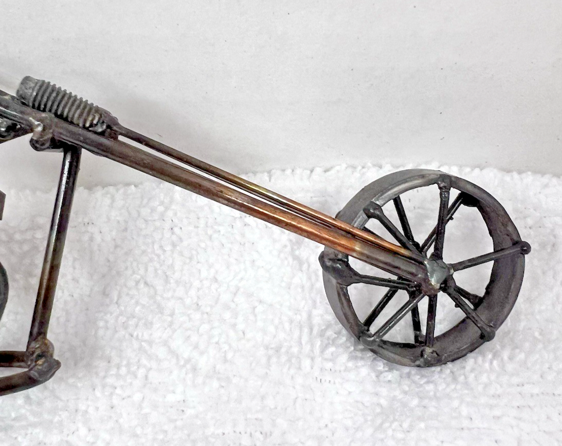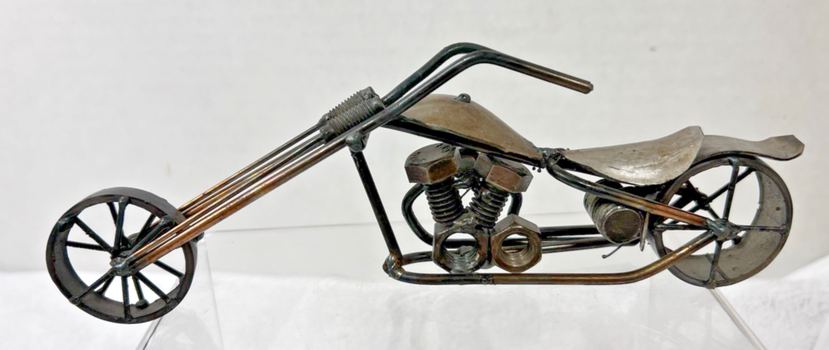 Handmade Metal Chopper Long Fork Sculpture Nuts Bolts 8 Inch long x 2.5 inches tall Self Standing