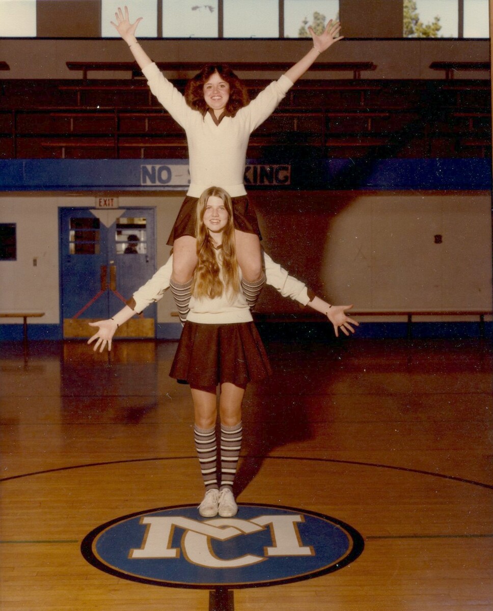 Vintage Cheerleader Buddy Photo Piggy-Back In Gym 1970's