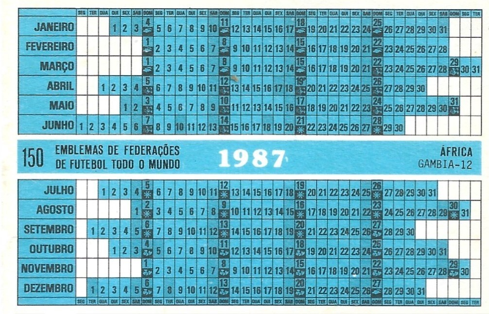 ⭕VTG card pocket calendar 1987 FOOTBALL FEDERATIONS EMBLEMS GAMBIA Nº 12
