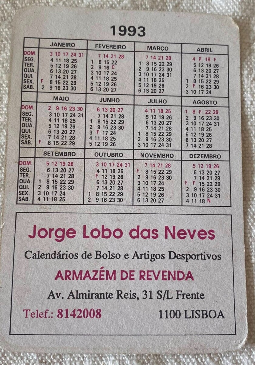 ⭕VTG card pocket calendar 1993 ARNOLD SCHWARZENEGGER Portugal MOVIE