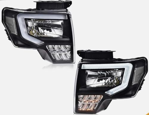 Fit For 2009-2014 Ford F150 LED Tube DRL Headlights Headlamps Black