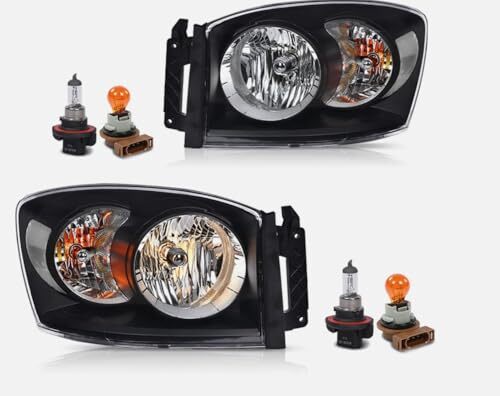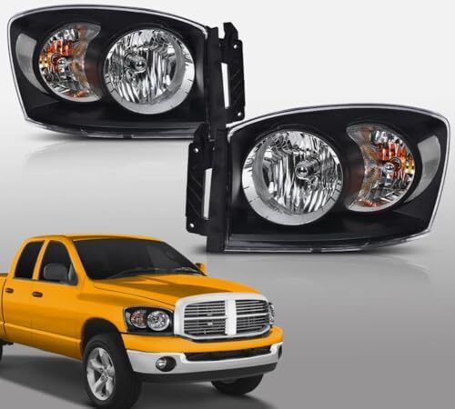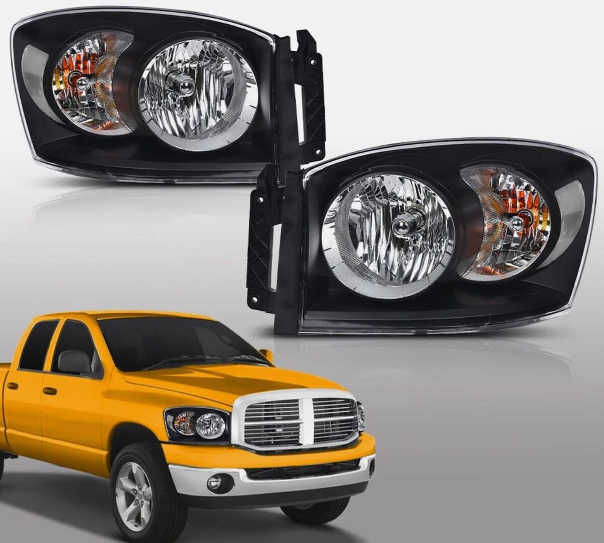 Fit For 2006-2009 Dodge Ram 1500 2500 3500 Headlights Headlamps Set Black/Clear