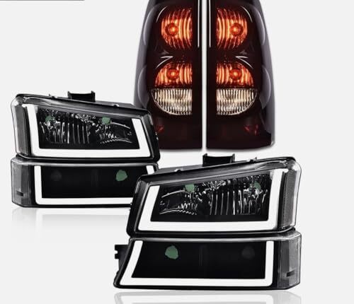 Fit For Silverado 2003-2007 LED DRL Black Housing Headlights + Tail Lights Pair