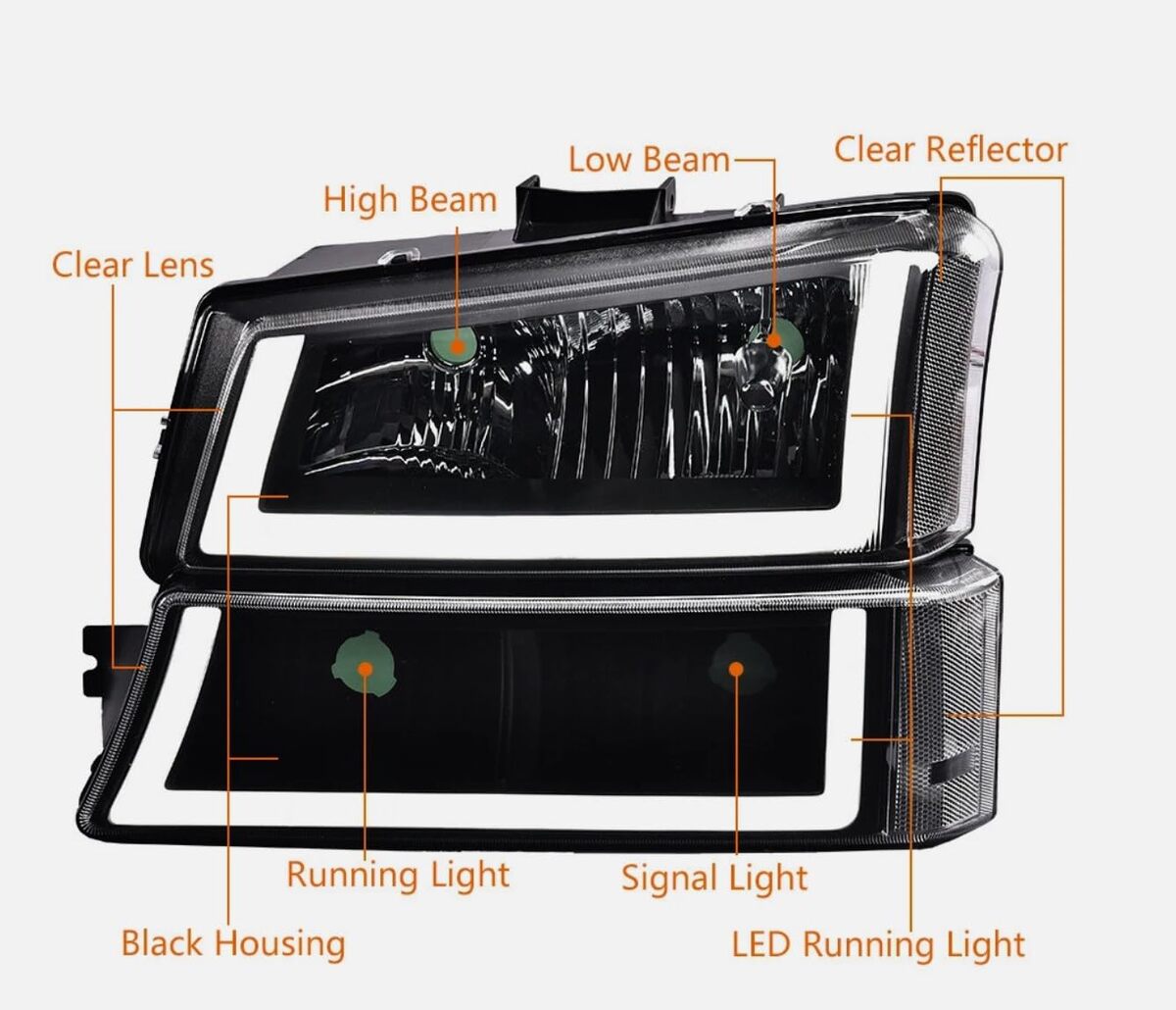 100% Brand New Items, Never Used Or Installed Comes With A Complete Set = (Left Driver + Right Passenger Side) Direct Bolt-On Fitment or Factory Replacement for the Stock Headlights + Bumper Lights Light Bulbs and Sockets Are NOT INCLUDED; You Are Required To Reuse or Purchase New Ones Adds an Unique Appearance Significantly Updating The Look Of Your Truck
