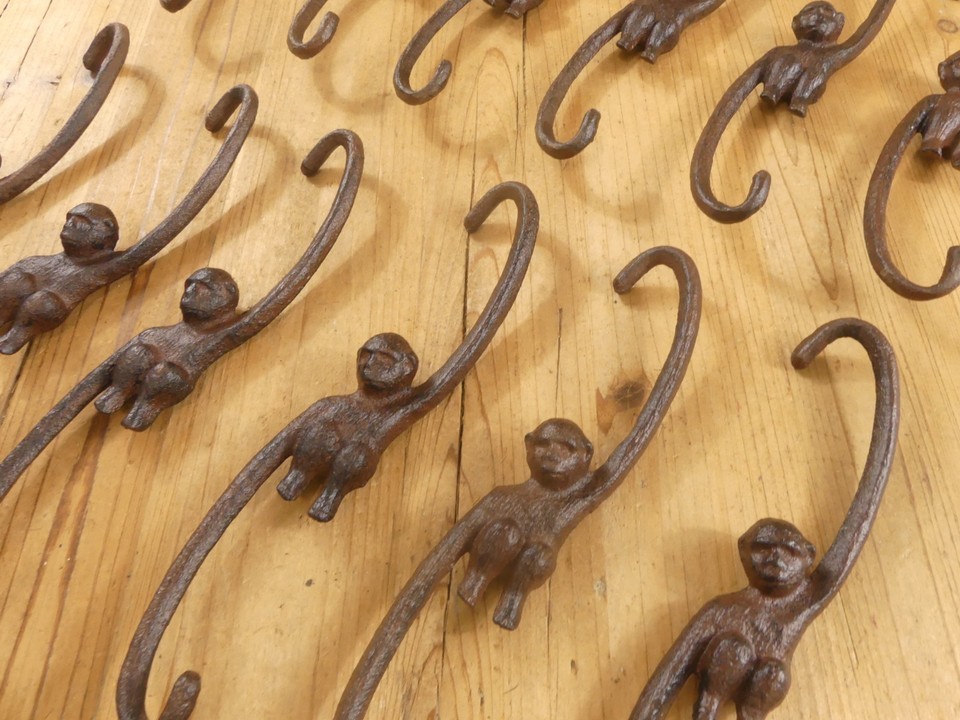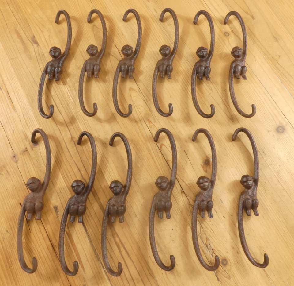 12 LARGE CAST IRON MONKEY HOOKS! SALE INCLUDES 12!