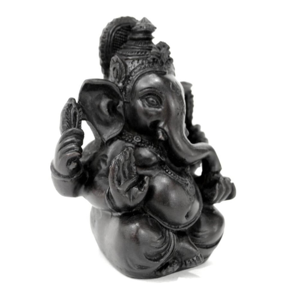 GANESHA STATUE 3.5" Small Black Resin Hindu Elephant God Lord India Figurine NEW