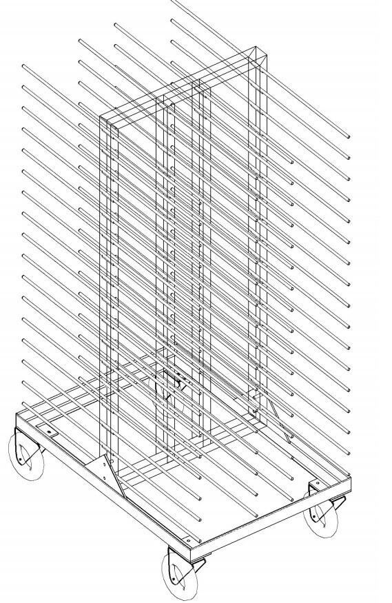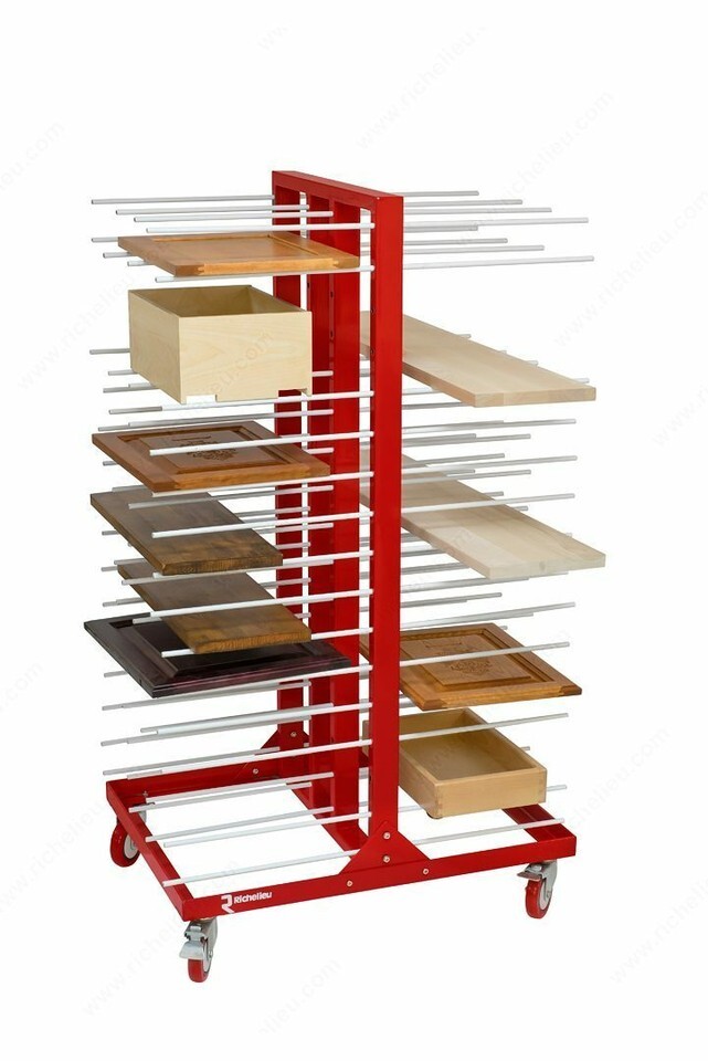 New Multipurpose Drying Rack RHC9129451. Facilitates material handling. Perfect size for drying cabinet doors and others items. This drying rack is also good for laminates. Ideal for your finishing department. Rods are removable so you can dry thicker items and longer items. Easy to assemble and dis-assemble.All-Metal ConstructionMultipurpose and VersatileTotal weight capacity: 1200 lb (35 lb/shelf)4 rugged 5" wheels (2 with brakes)Additional Product Specifications and DetailsProduct Specifications 1Product Specifications 2Product Specifications 3Product Specifications 4