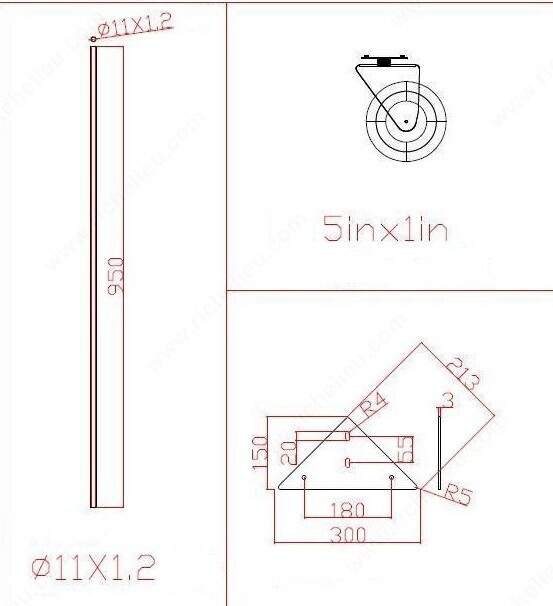 4 rugged 5 wheels (2 with brakes), 2-7/8 spacing between the horizontal rods. Important information: packaged in three boxes
