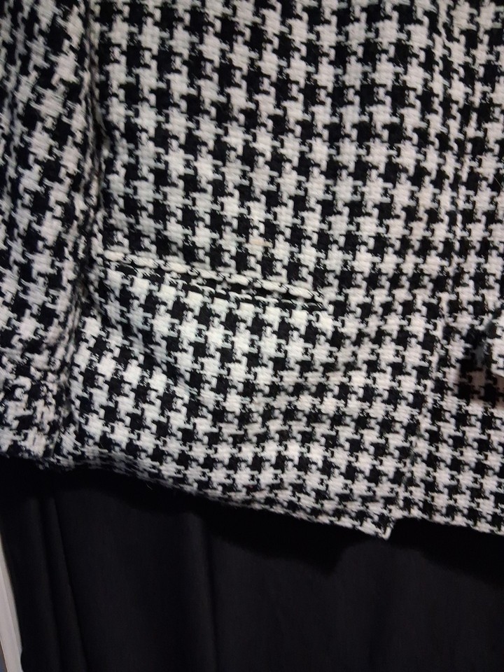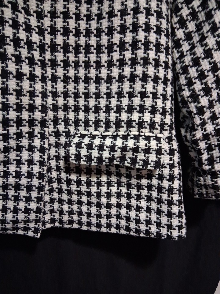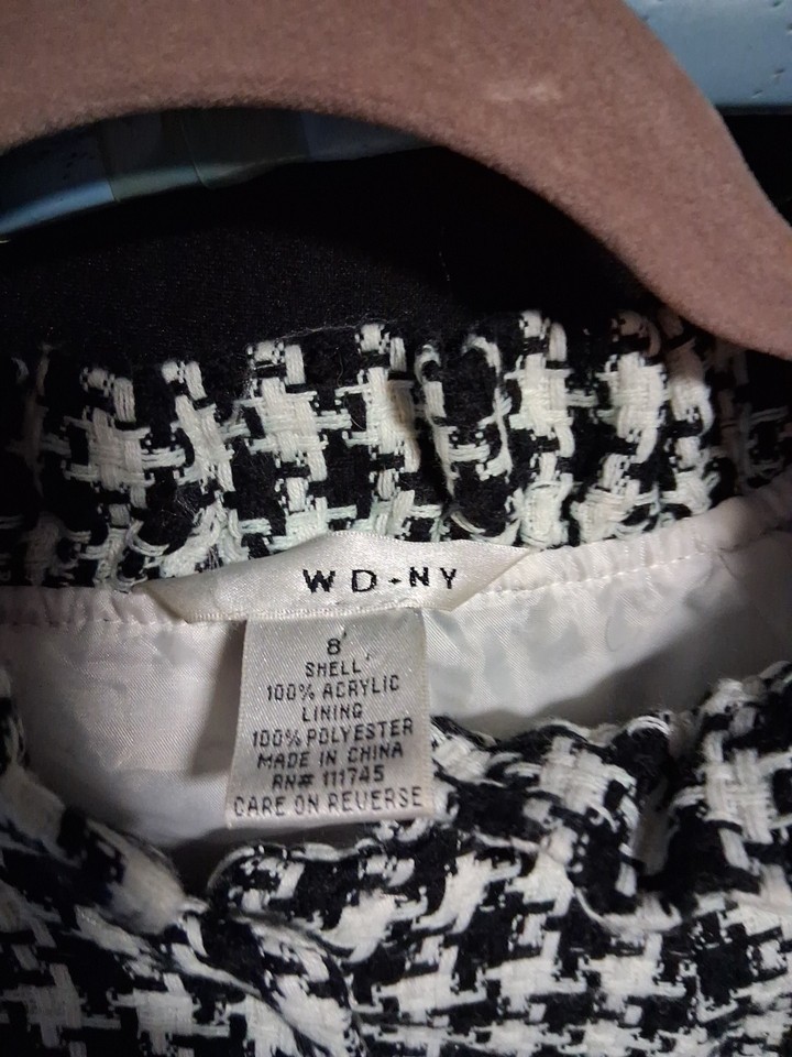 WD NY Womens Jacket Black White 3/4 Slv Lined Sz 8 Houndstooth Blazer