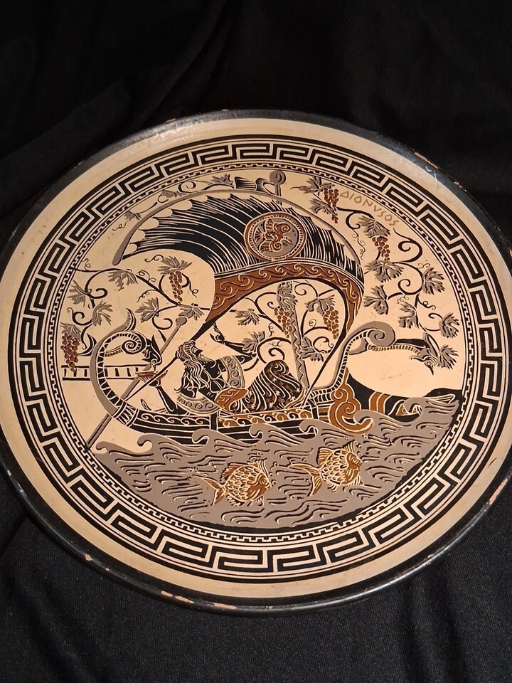 Large Terracotta Clay Plate Vintage Dionysos Art The Odessey