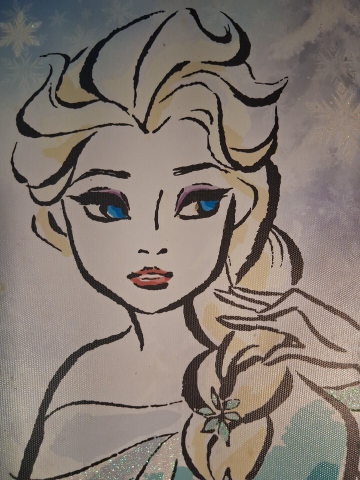 The product is a limited edition Disney Frozen Elsa designer art sketch on a 20?x16? canvas wall frame. This collectible item features the beloved character Elsa from the Disney Frozen franchise, making it a must-have for fans of the popular animated movie. The high-quality design and unique artwork make it a standout piece for any Disneyana collector looking to add a touch of magic to their home decor.