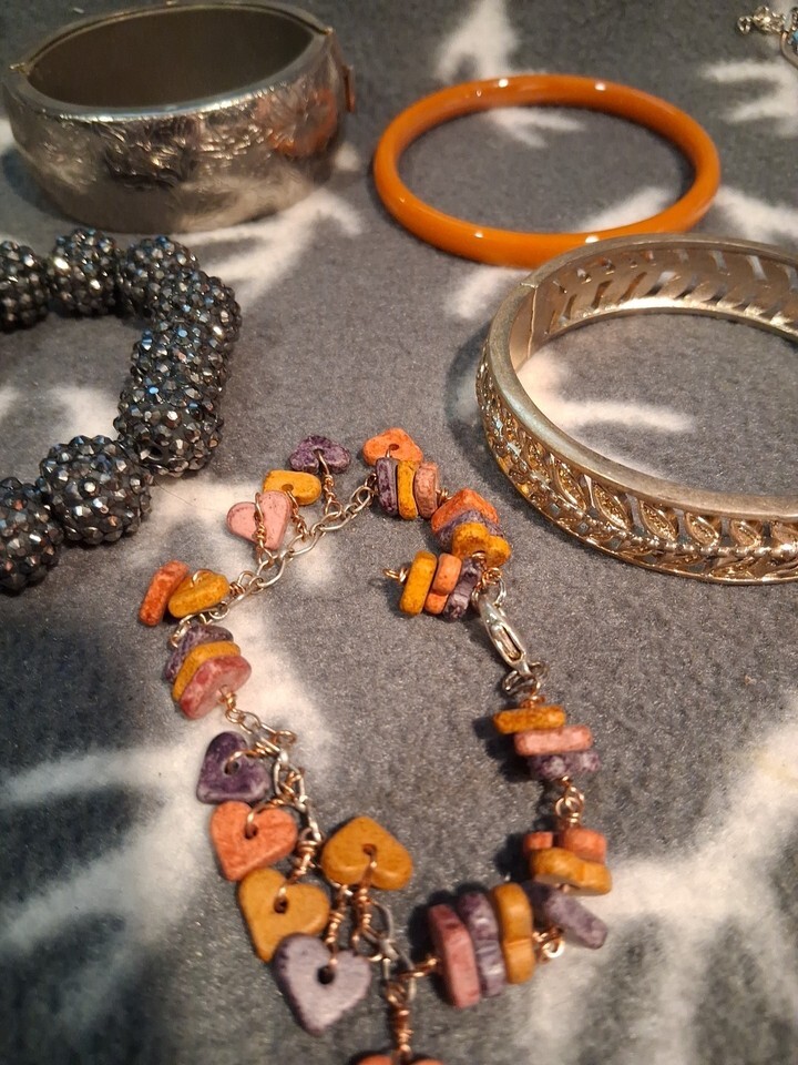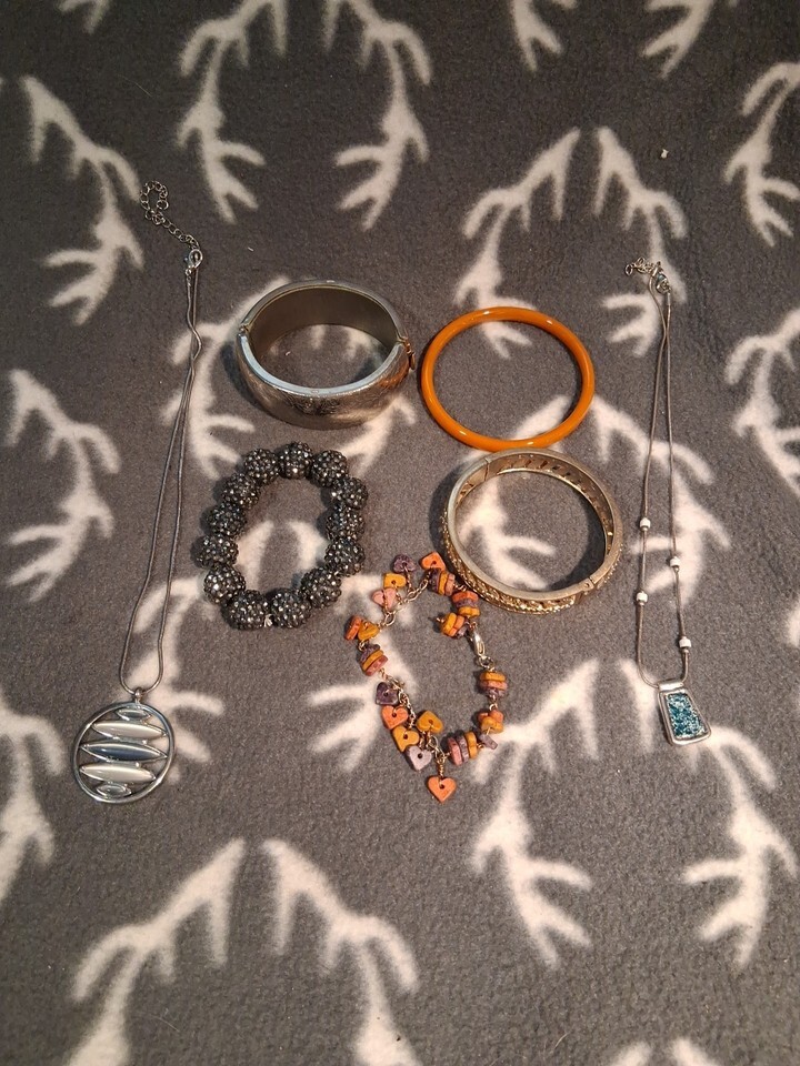 The product is a mixed lot of bracelets and necklaces from an estate sale. It includes both new and old pieces of jewelry, providing variety and unique options for shoppers. The lot offers a range of styles and designs, perfect for those looking to add some variety to their jewelry collection or for those interested in vintage pieces. With a mix of both new and old items, this lot provides a diverse selection for buyers looking for different types of accessories.