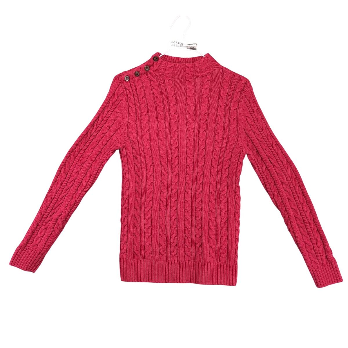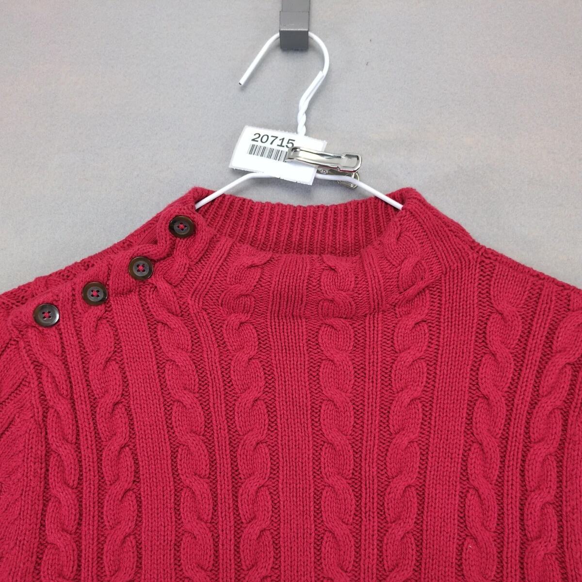 Croft & Barrow Red Cable Knit Sweater Women's S Button Mock Neck Classic Preppy
