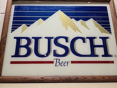 This vintage Busch beer bar mirror is a must-have for any breweriana collector. Measuring 12.5x18.5 inches, it's the perfect addition to any home bar or man cave. The mirror features the iconic Busch logo and is made to look like an old-fashioned beer mirror.