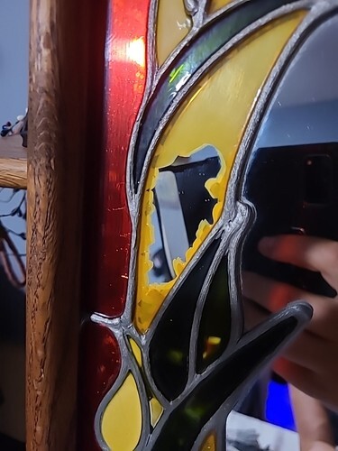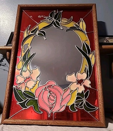 Vintage Stained / Painted Glass Accent Wall Mirror Framed 25 x 17" - AS-IS READ