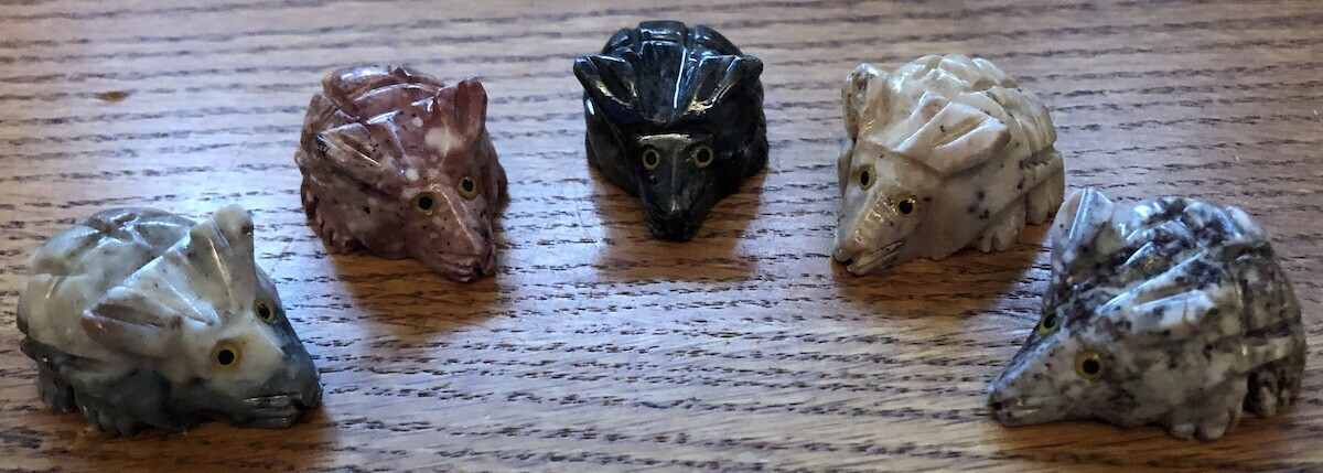 Made in Peru. Sculpted of dolomite, measures approximately 1 inches tall and 1.5 inches long. As with any stone, colors vary from piece to piece making your Hedgehog Spirit Animal unique.
