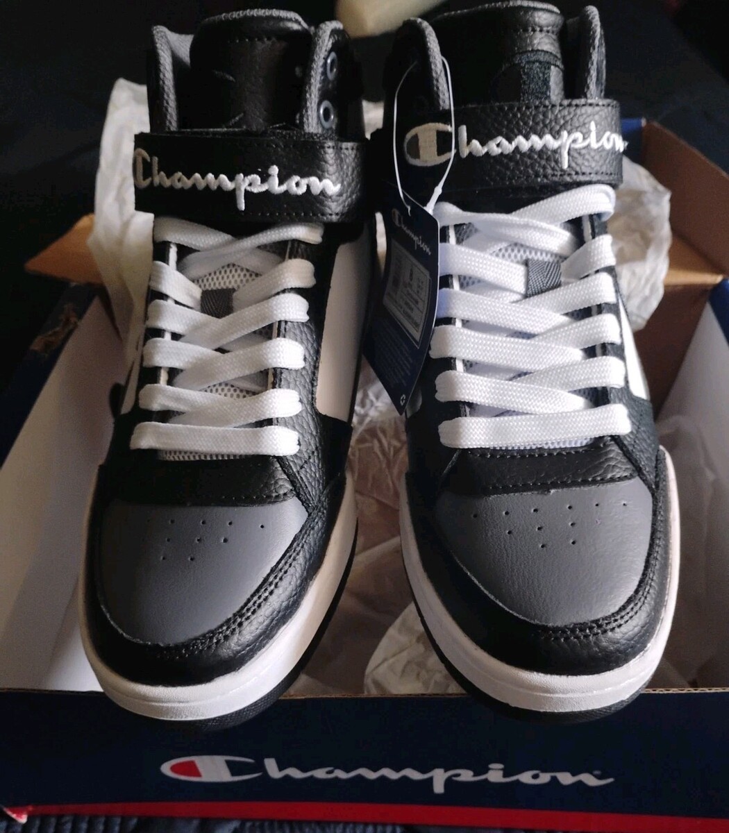 CHAMPION Men's Athletic Arena Hi Top Sneakers NWT Size 8 BLACK/WHT/S.NIGHT