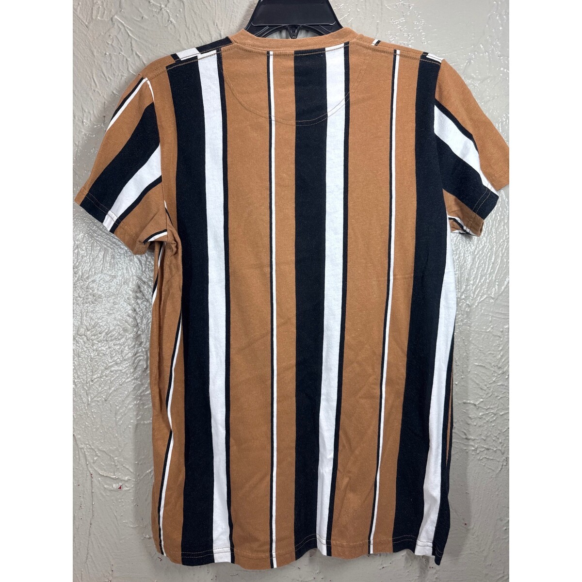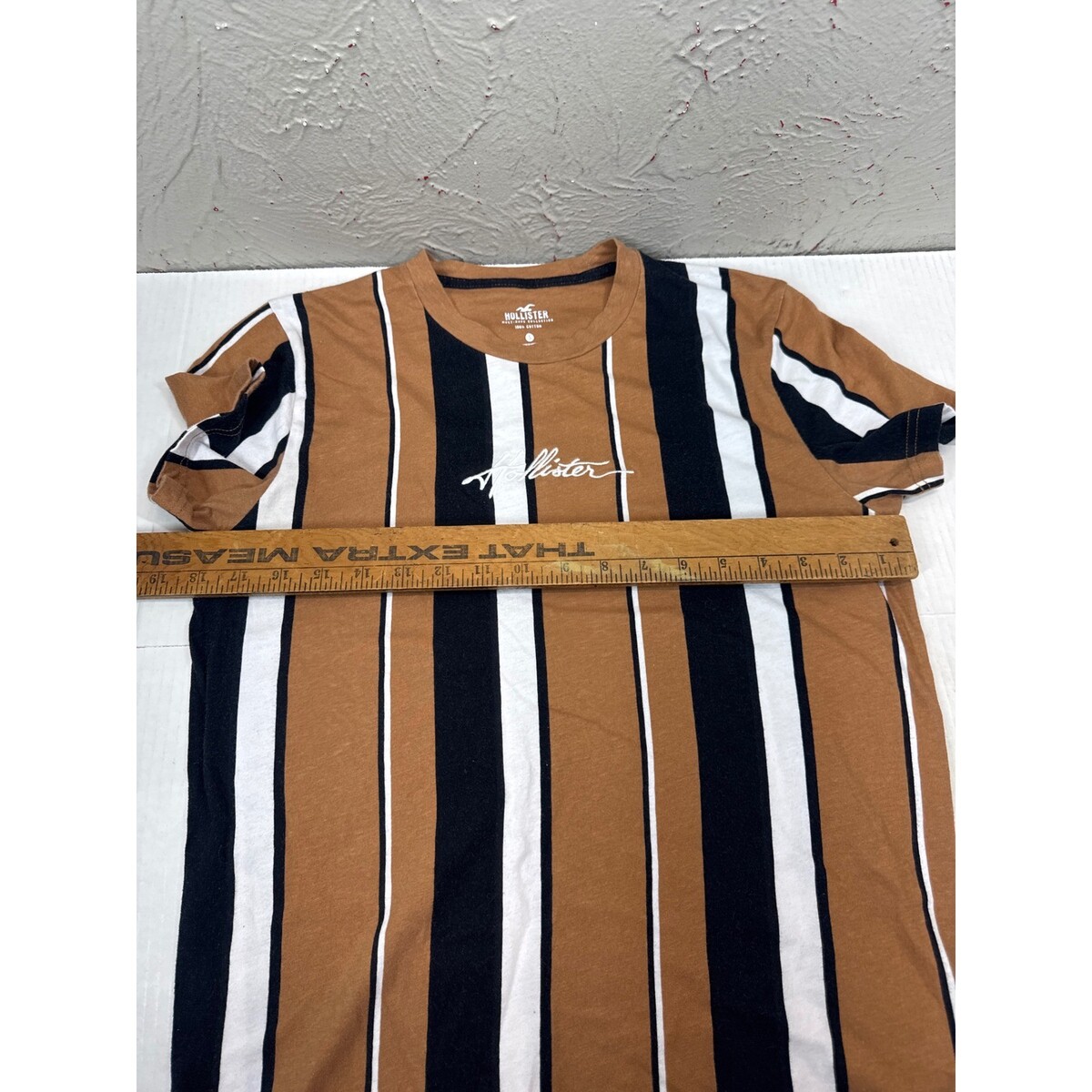 Hollister Men's Striped T Shirt Short Sleeve Cotton Brown White Black Size S