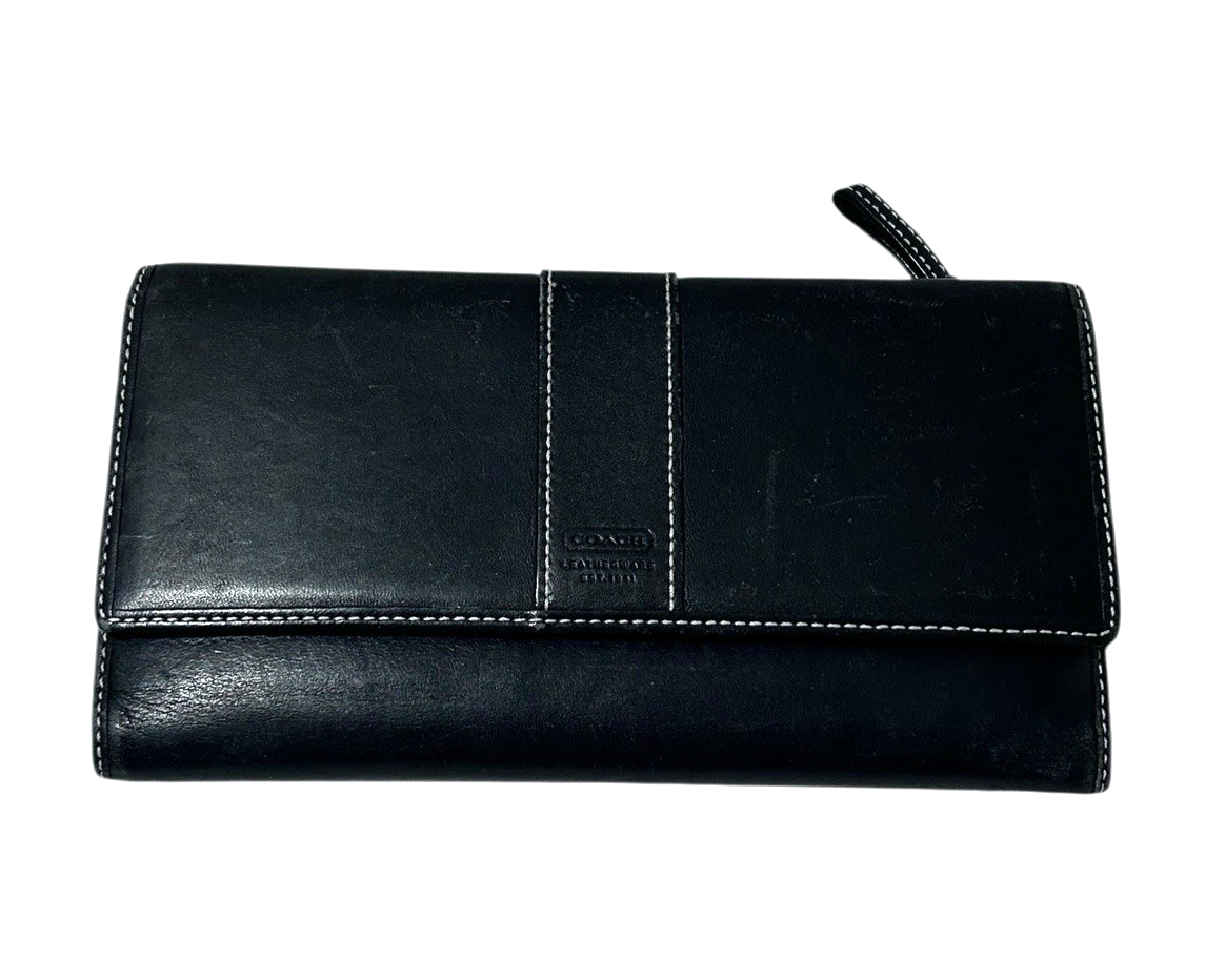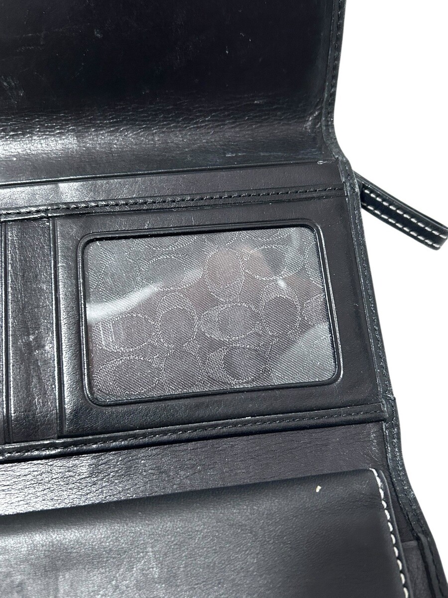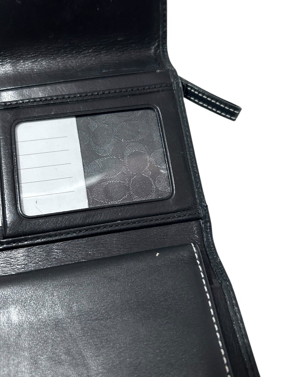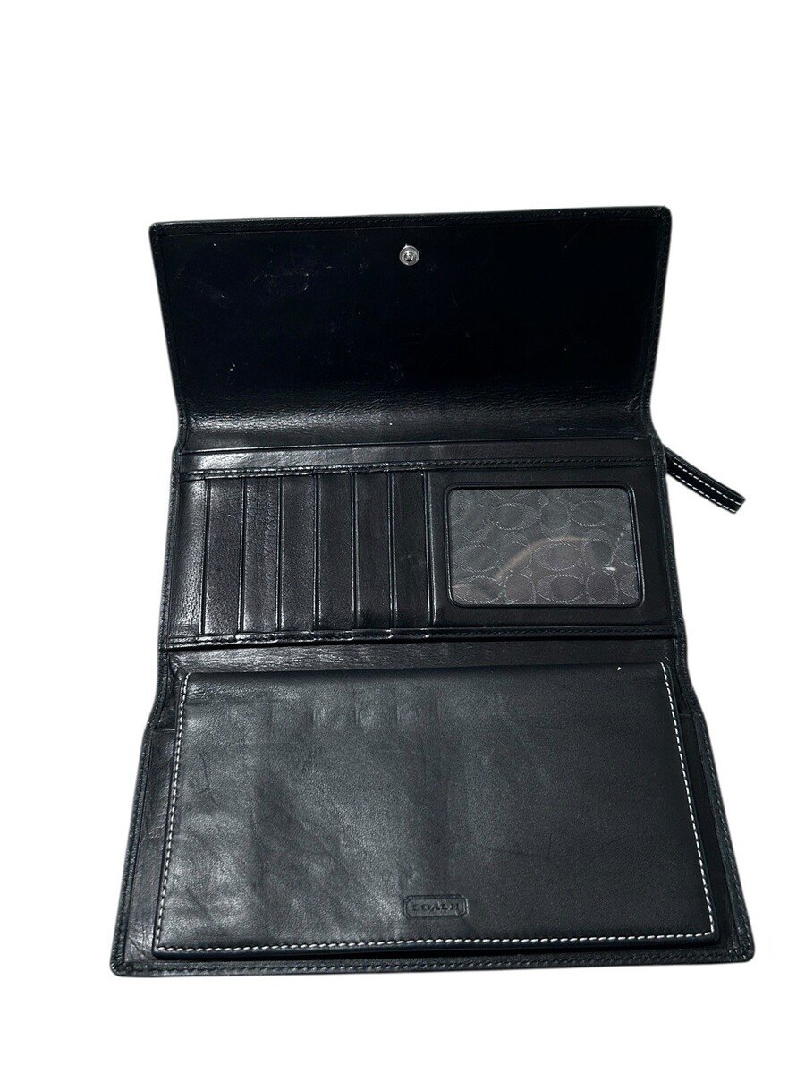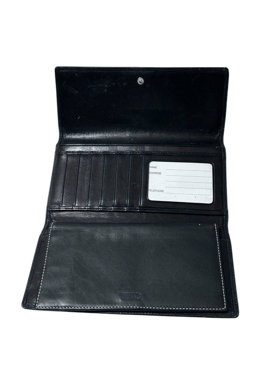 *VINTAGE * COACH HAMPTONS LARGE BLACK TRIFOLD LEATHER CHECKBOOK WALLET