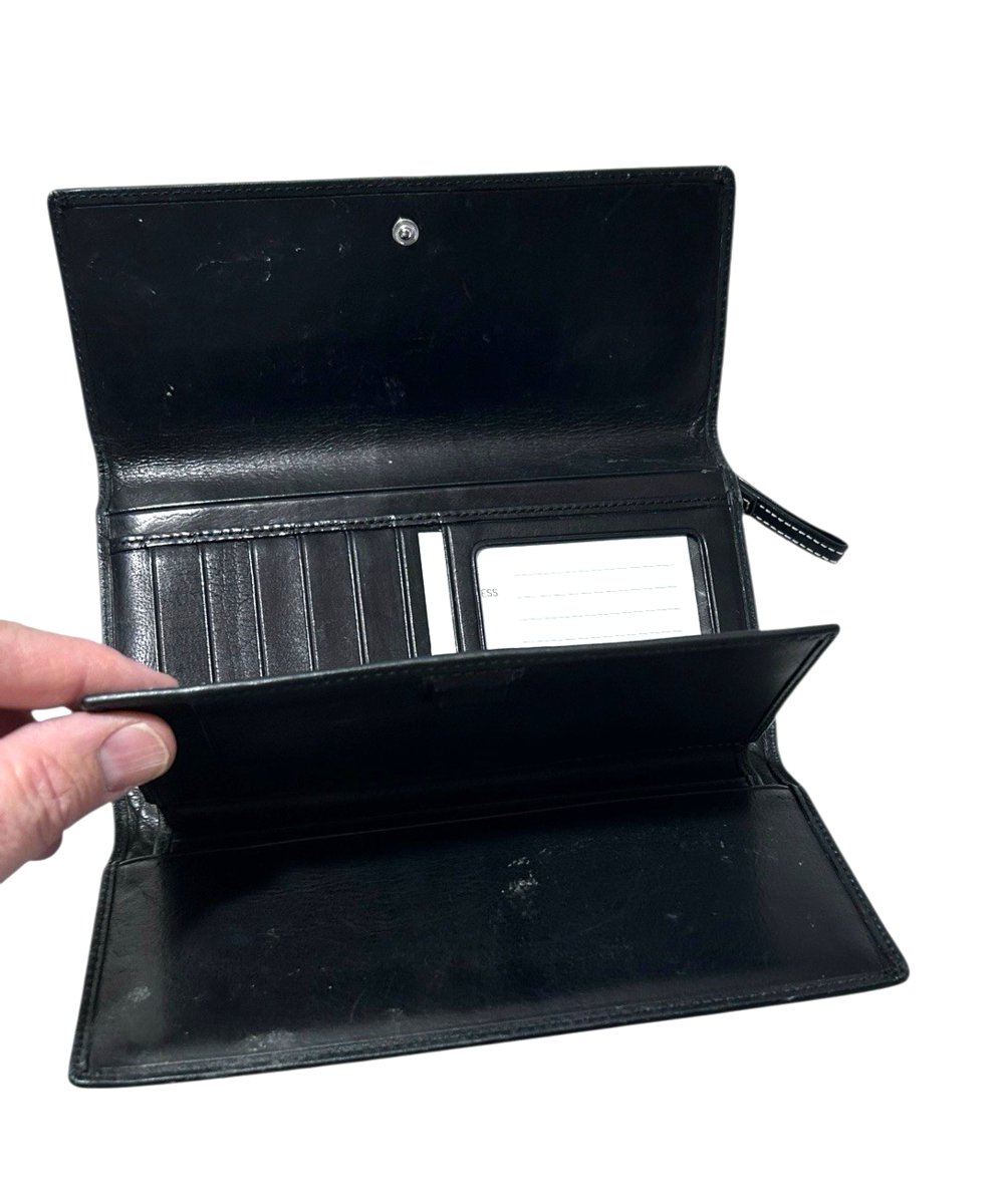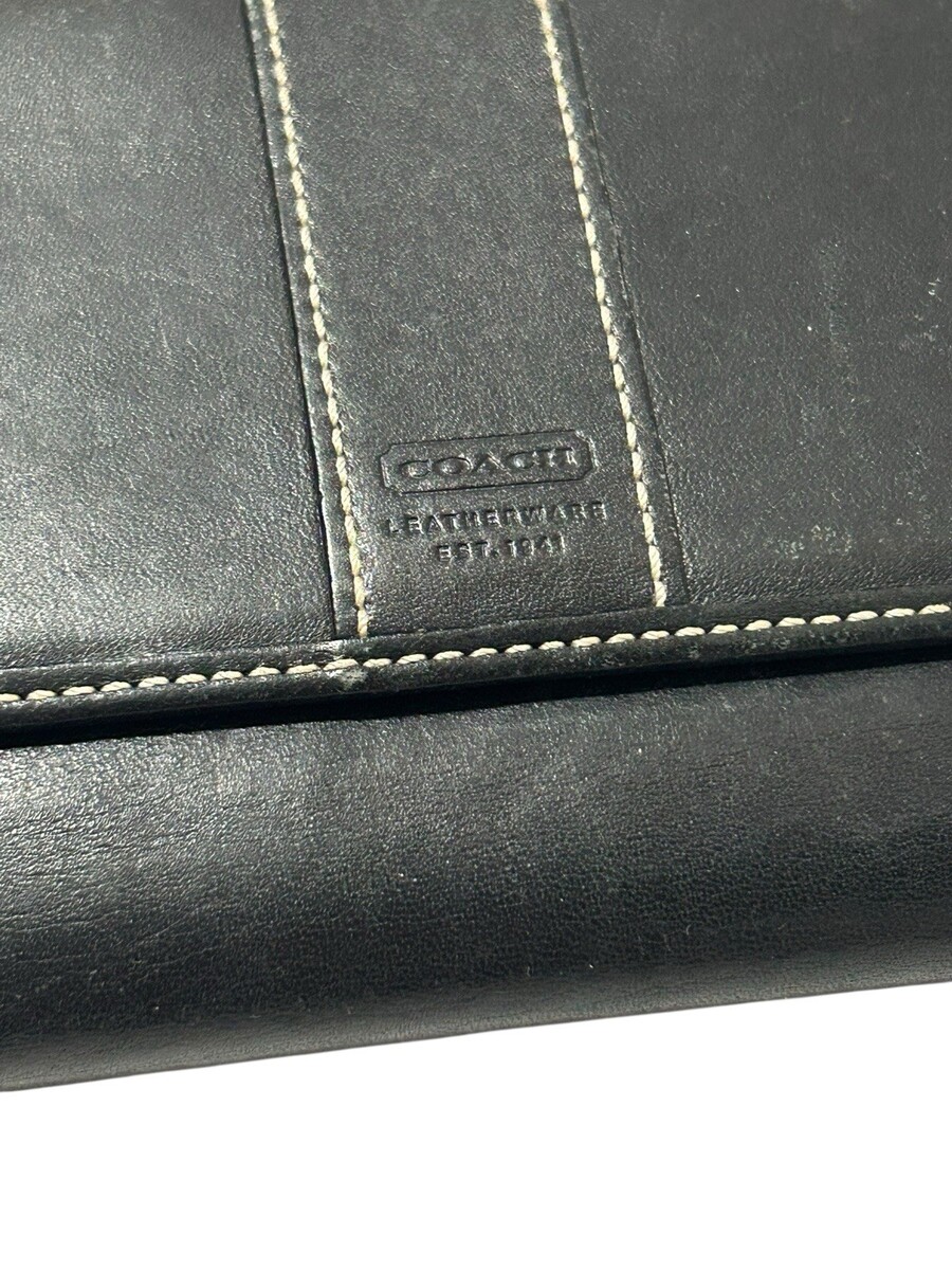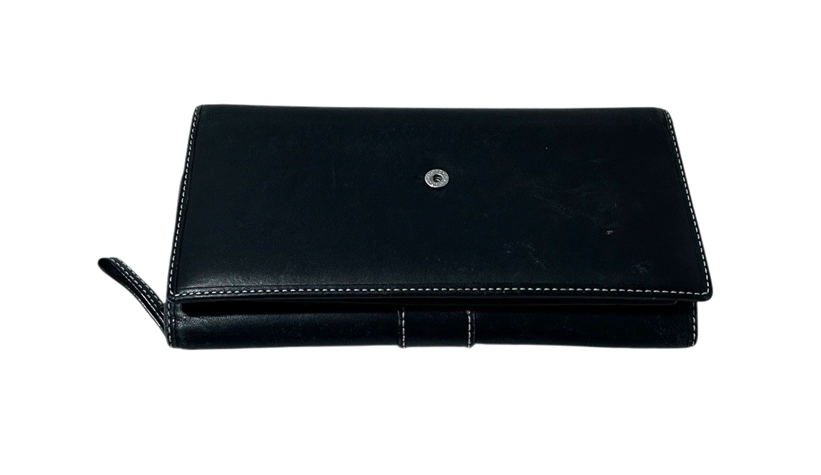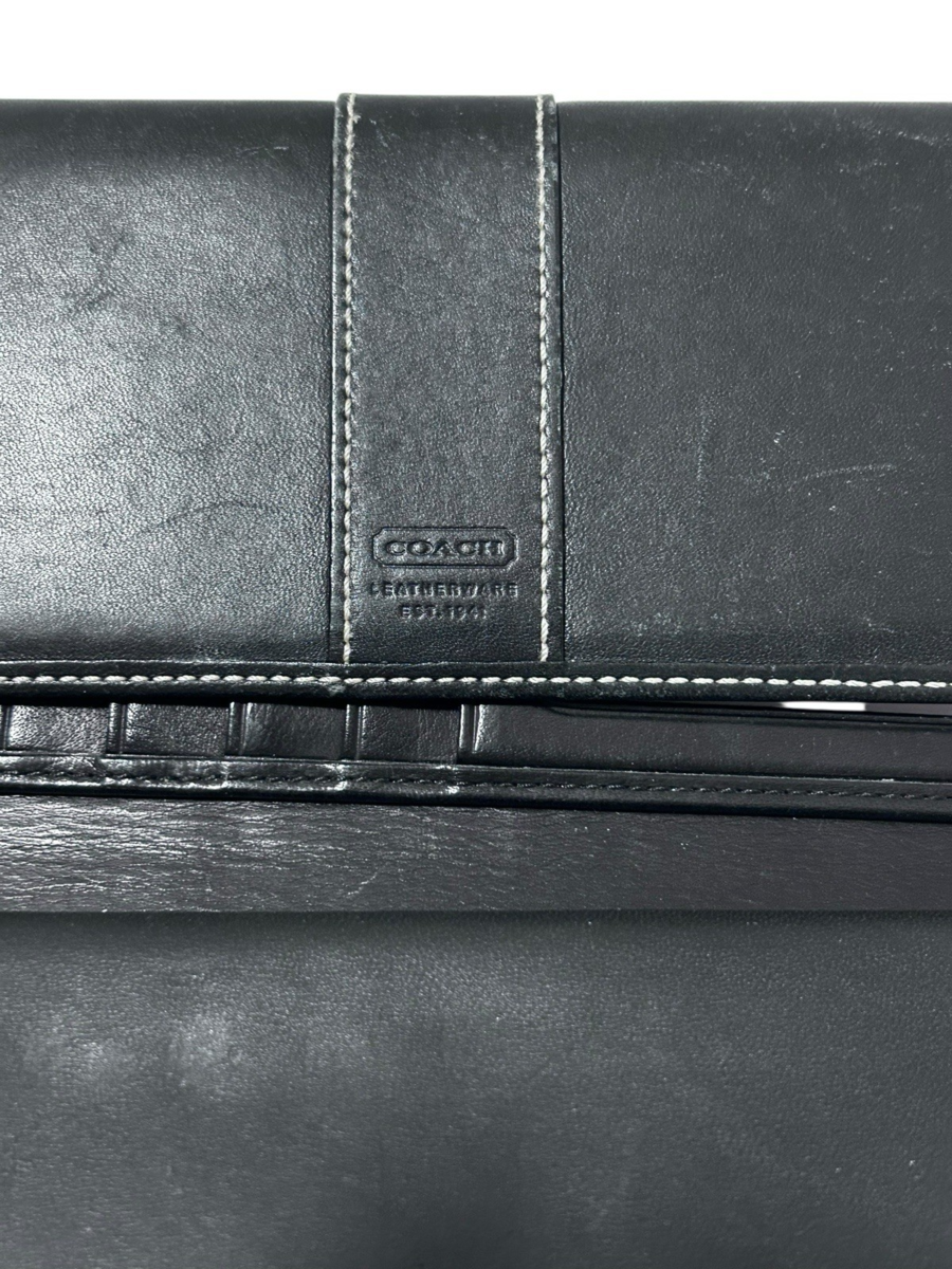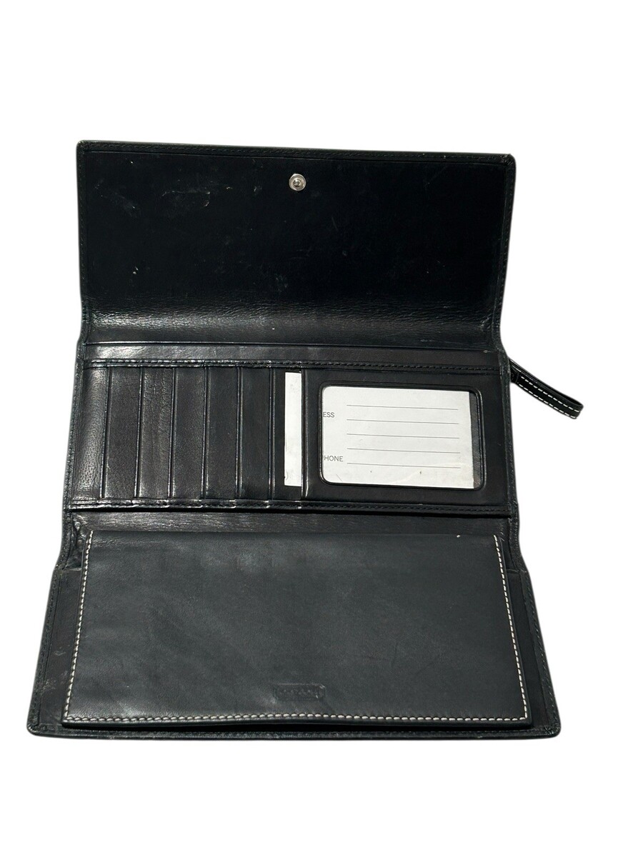 *VINTAGE * COACH HAMPTONS LARGE BLACK TRIFOLD LEATHER CHECKBOOK WALLET