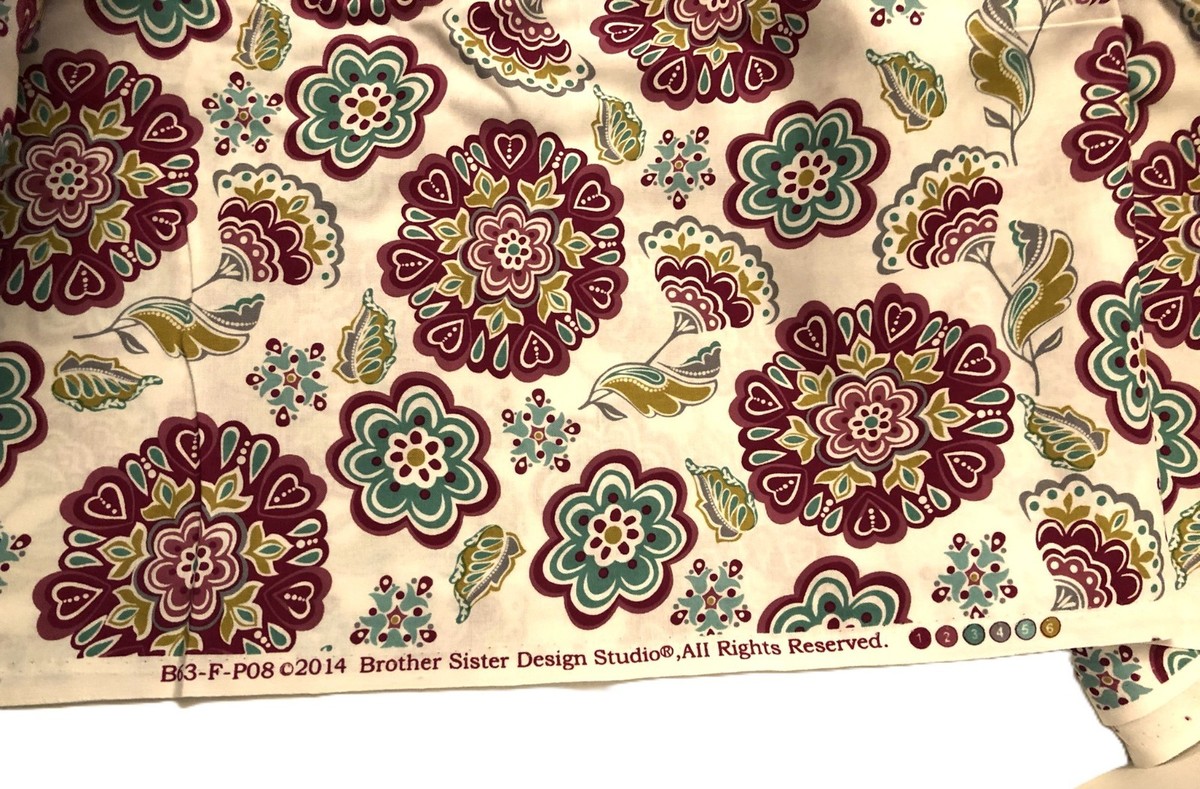 White, Purple, Teal Floral Fabric for Sewing, Crafts, Quilting, Material