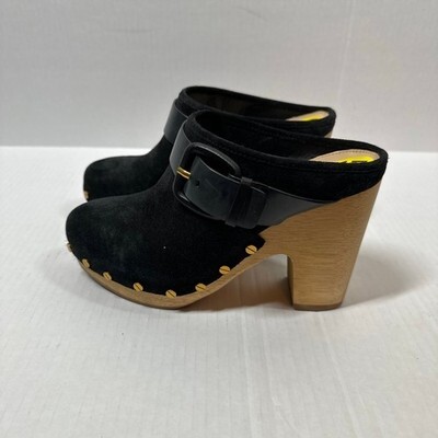 Veronica Beard Womens Black Dacey Suede Slip On Heels Clogs Shoes Size 5This item has been cleaned pers used clothing policy.