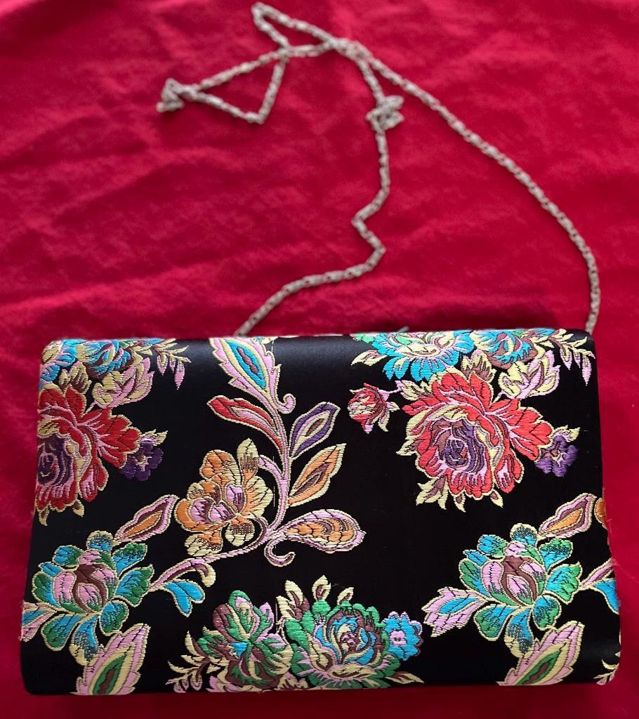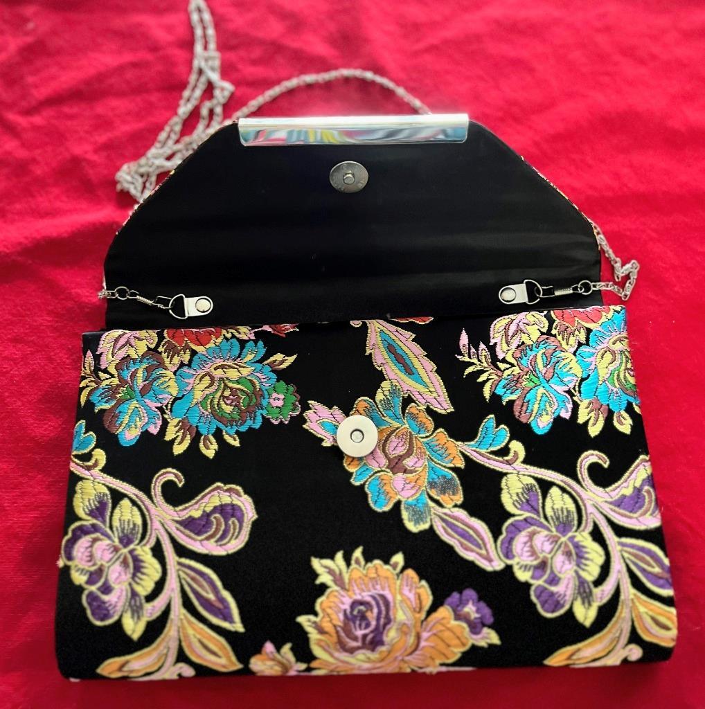 Black Satin Handbag w Multi Color Embroidery and 48 similar items