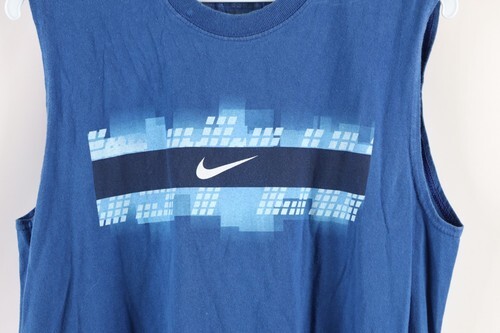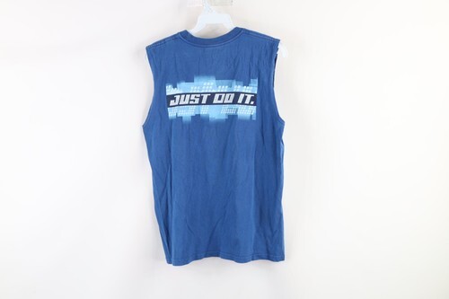 Vintage Nike Boys Size Large Faded Spell Out Sleeveless T-Shirt Blue Cotton