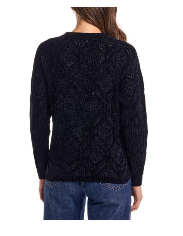 Weatherproof Vintage Womens Sweater Black Chenille Long Sleeves Metallic Shimmer