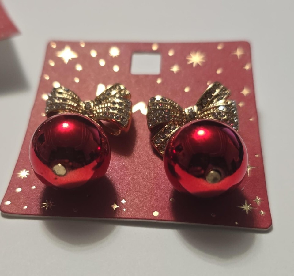 I Am' New Limited Edition Gold Christmas Bow Ball Ornament Red Earring
