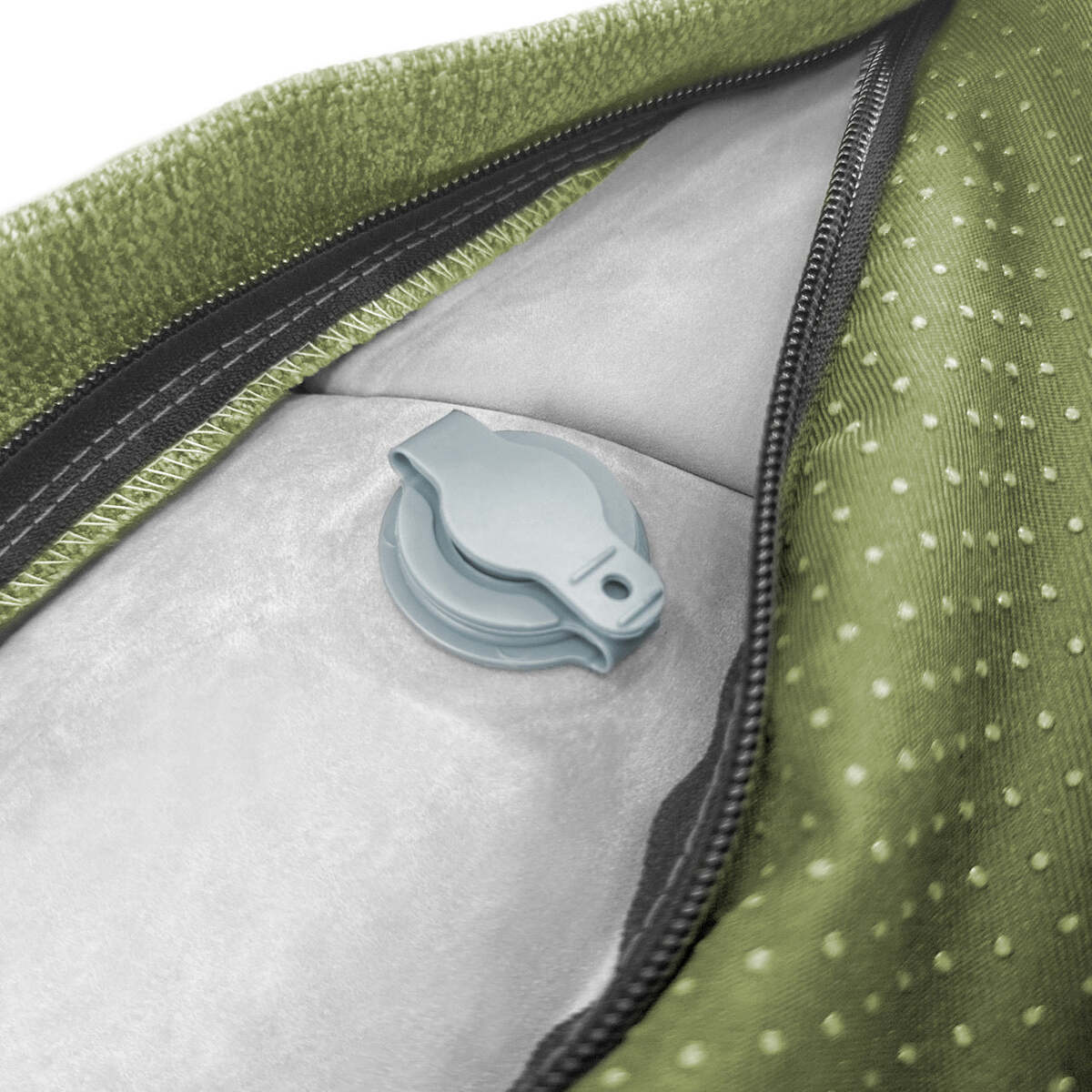 Cloud Couch Water-Repellent Ergonomic Inflatable Couch with attached headrest, 5-chamber air openings, seat cushion, electric air pump included, 3 color options?Cover: 370gsm 100%polyester fabric Cover bottom: anti-slip fabric. Inner: PVC flocking. Packaging: Cover compressed, Inner fold put in PE bag, Put together in a carton. Includes an electric inflator pump