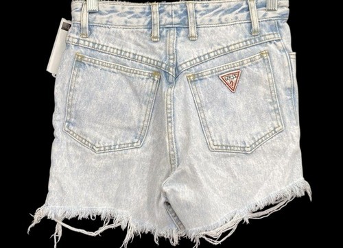 Step back into the 1980s with these authentic Georges Marciano for Guess denim shorts. Made in the USA, they feature the iconic Guess triangle logo on the back pocket, raw frayed hems, and a classic high-waisted fit.