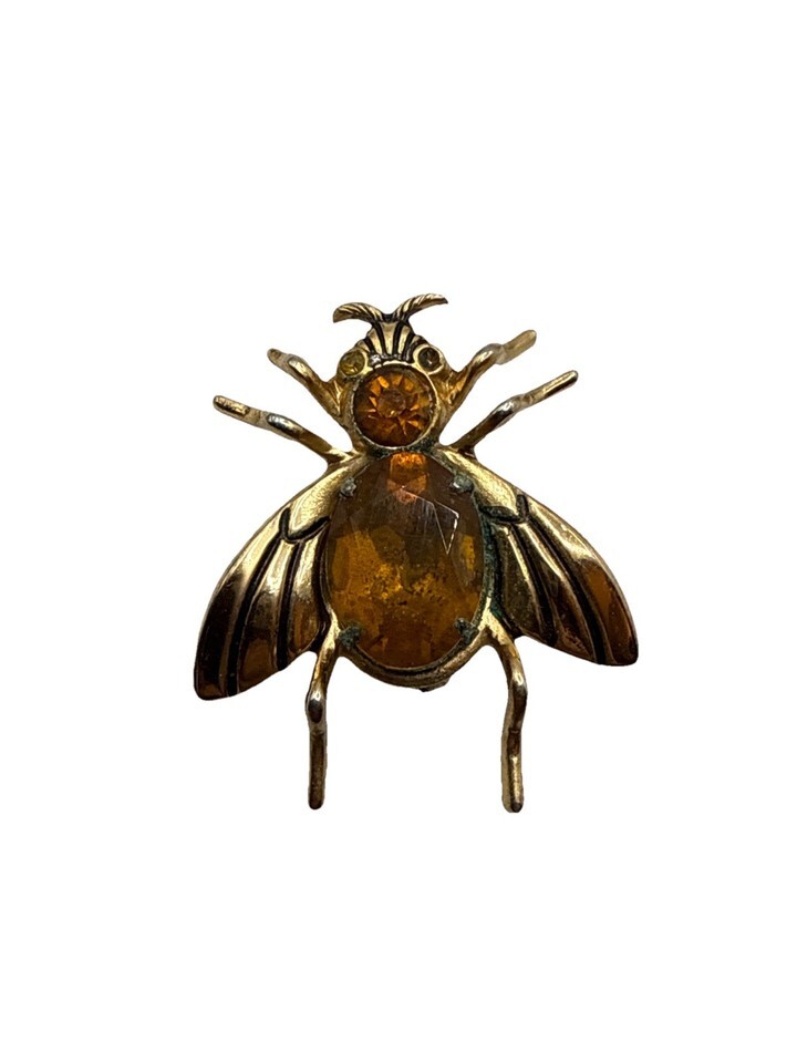 Vtg 50s Signed CORO PEGASUS Gold tone Champagne Rhinestones BUG Shape Pin Brooch