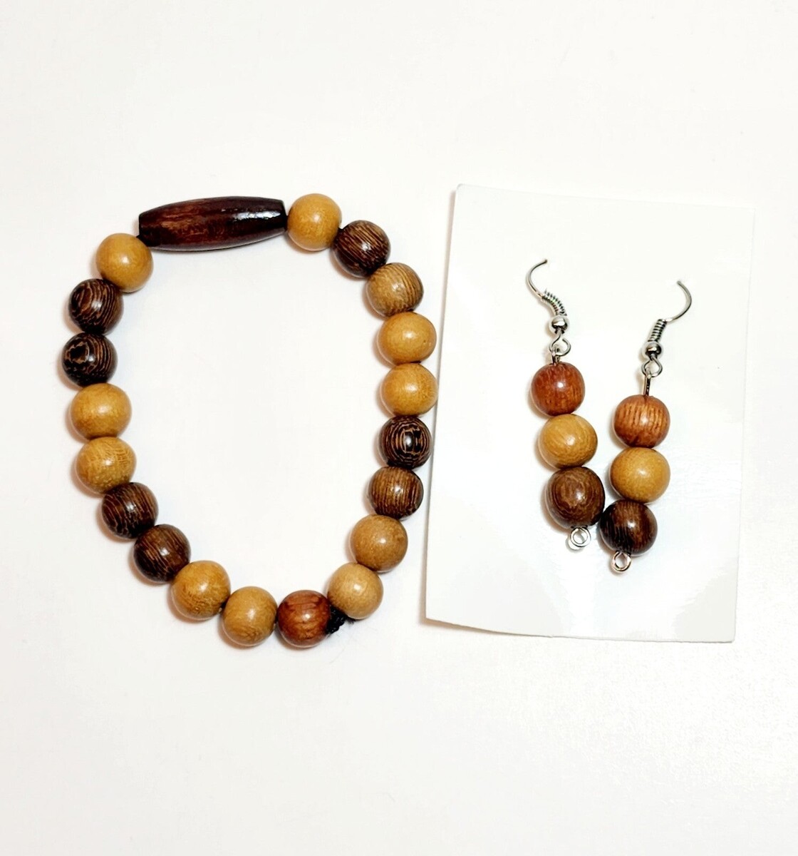 Wood Bead Bracelet Earrings Set Costume Handmade B66 Maine