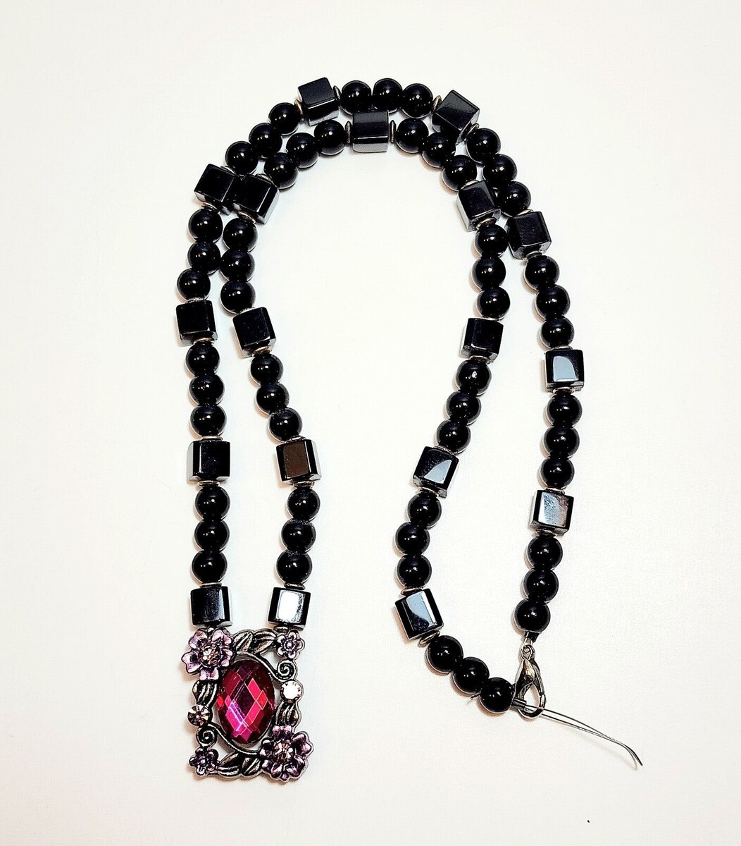 Vintage Pink Gem Floral Necklace Costume Beaded Handmade B66 Maine