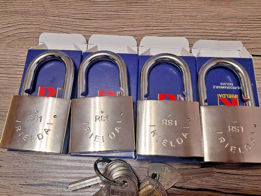 4 X RIELDA Keyed Alike Padlocks Re-programable High Security/With 8 +1 Keys
