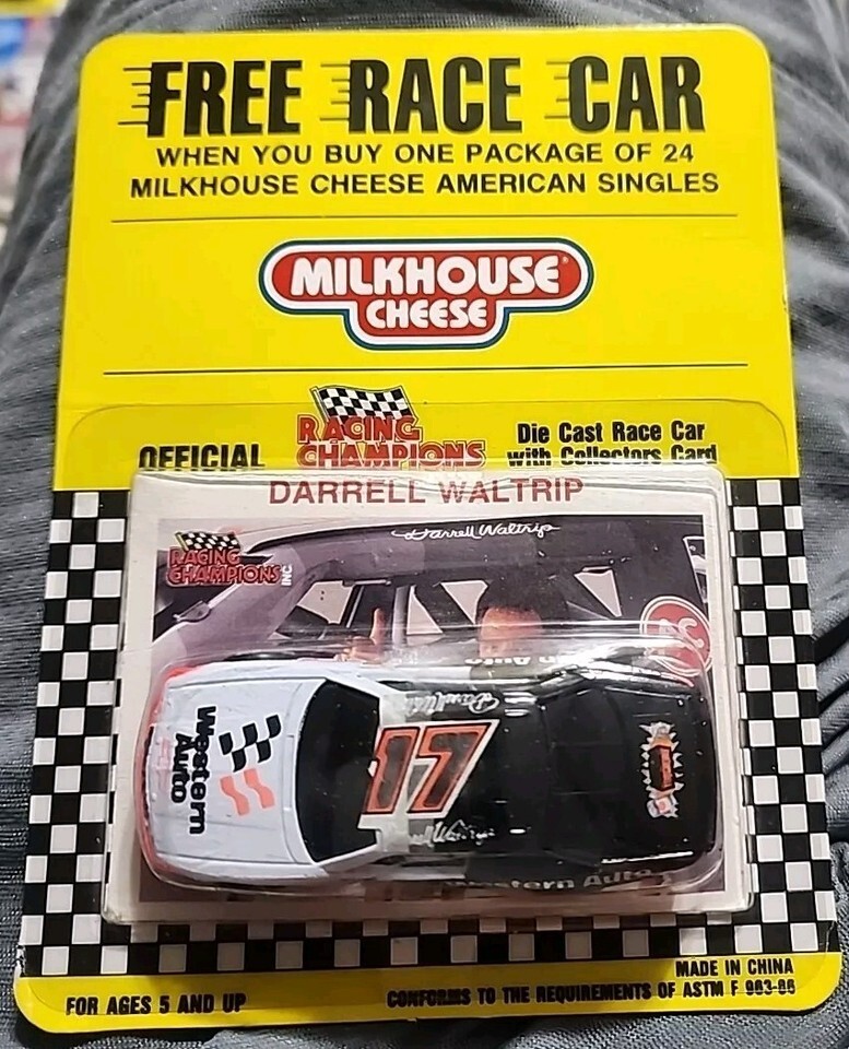 Darrell Waltrip #17 Racing Champions Qestern Auto Milkhouse Cheese promo diecast in great condition. Does have one very slight crease on top right of card